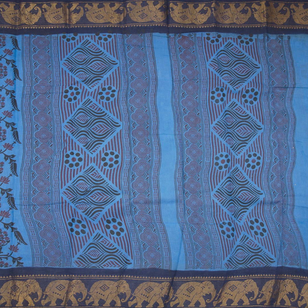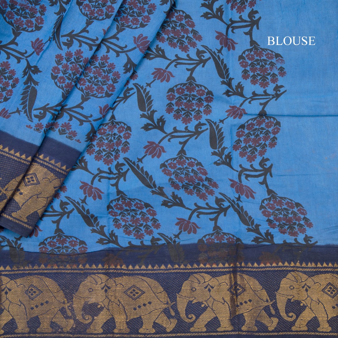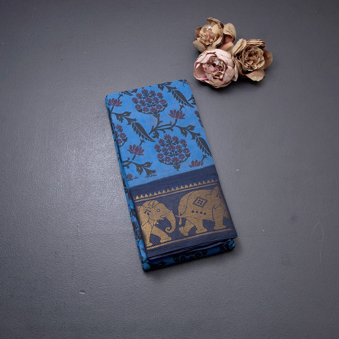 Sungudi Cotton Azure Blue Floral Printed Saree