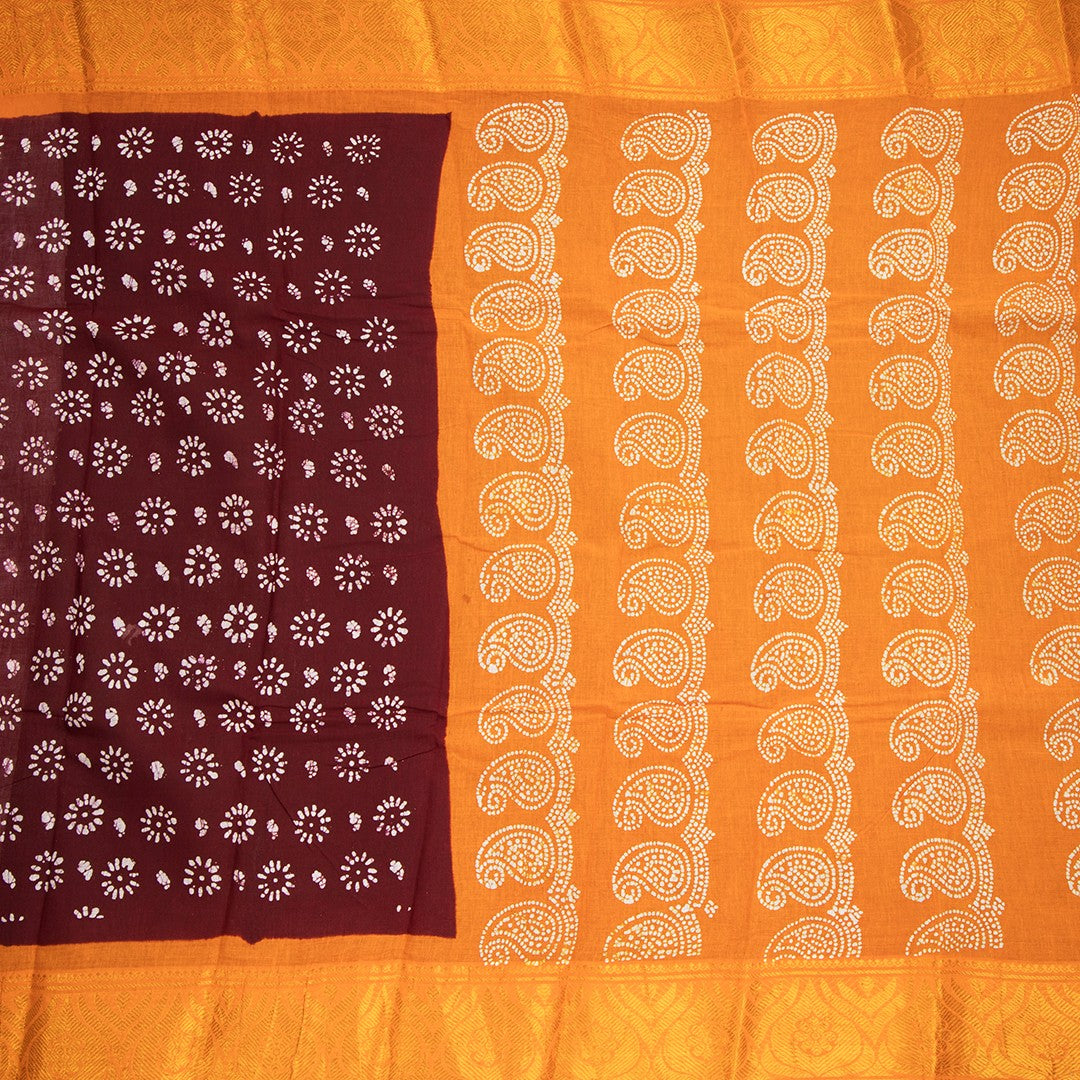 Sungudi Cotton Maroon Printed Saree Without Blouse 08