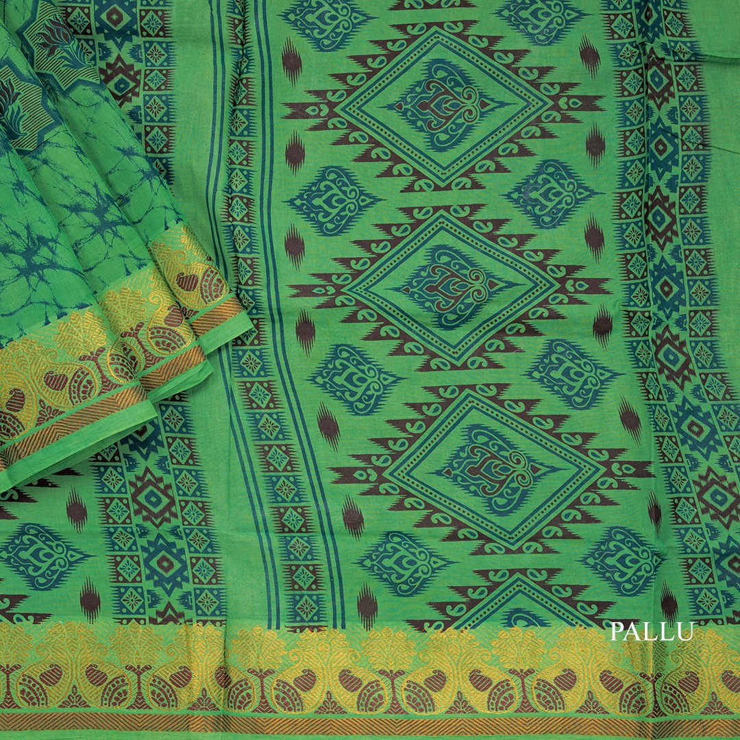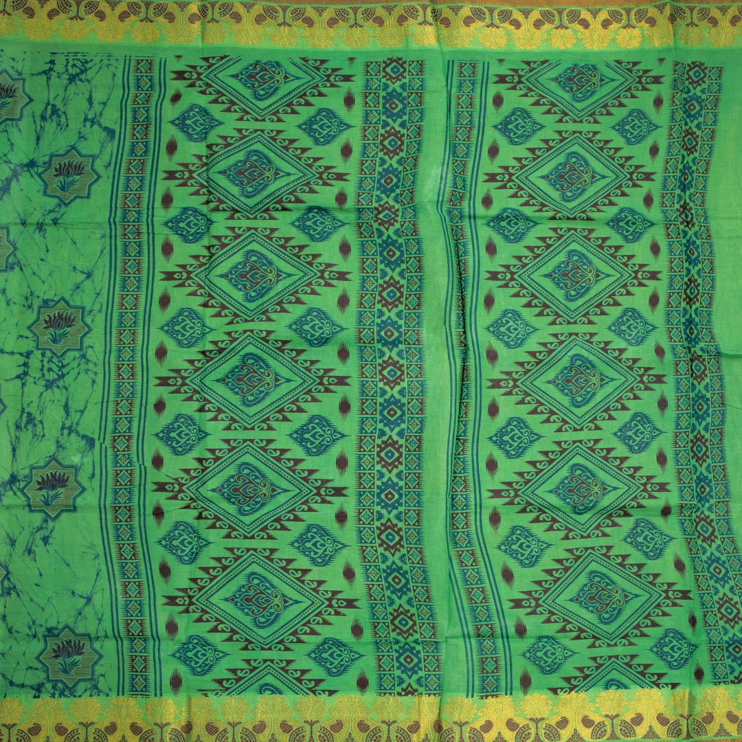 Sungudi Cotton Parrot Green Printed Saree Without Blouse 02