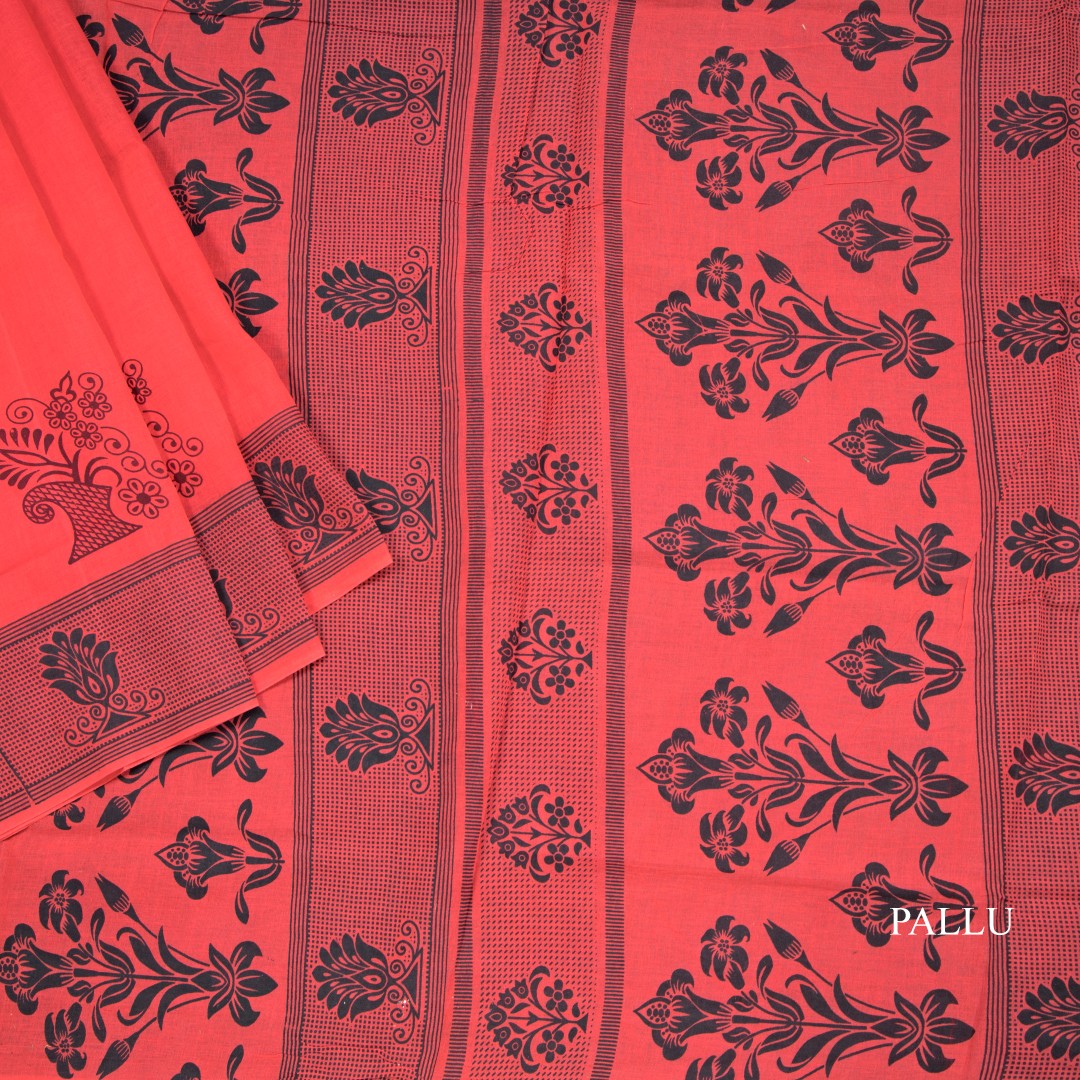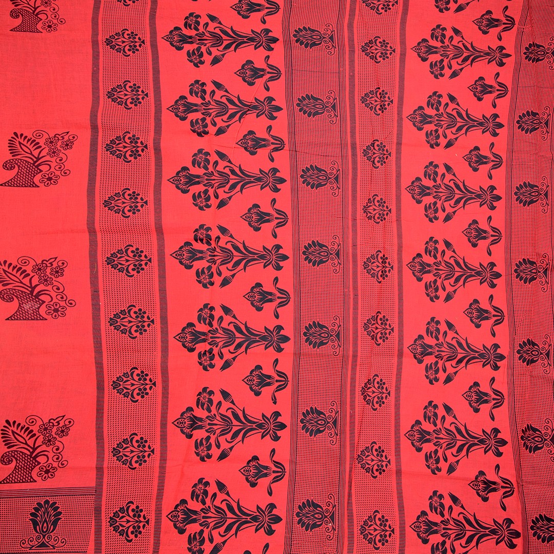 Sungudi Cotton Red Printed Saree Without Blouse 03