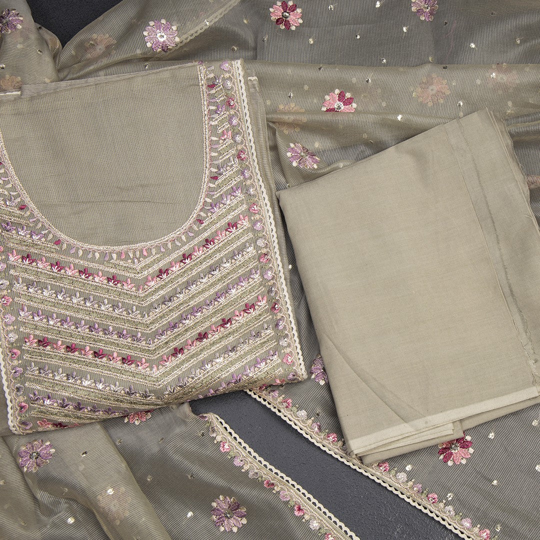 Mul Chanderi Unstitched Salwar Suits Crafted For Comfort And Elegance. Soft, Breathable Fabric Enhanced With Delicate Thread Embroidery Work. Perfect For Festive Gatherings, Casual Celebrations, And Graceful Everyday Wear. Timeless Charm With A Touch Of Traditional Luxury. Note: Can Stitch Upto 5 Xl Size