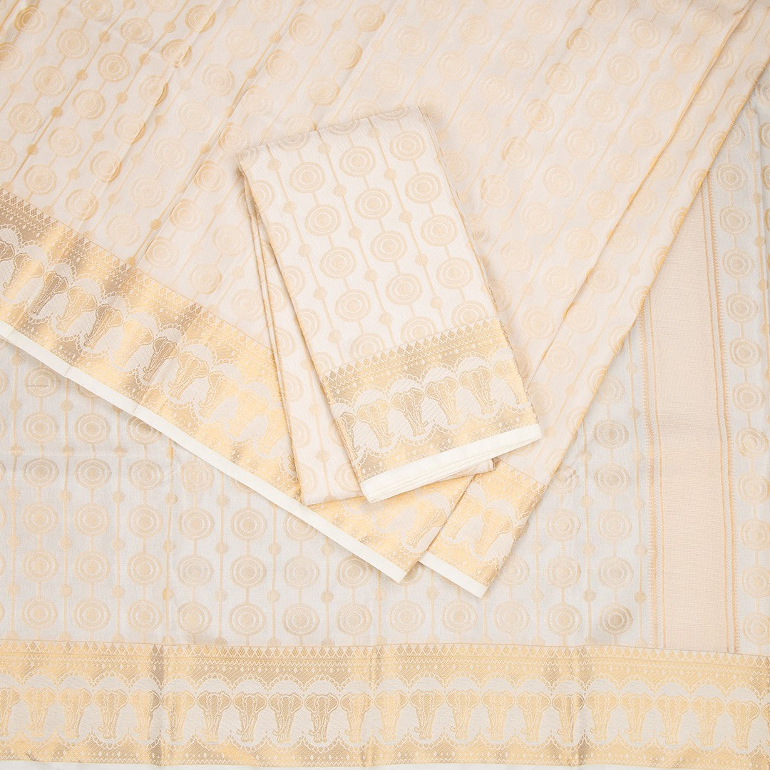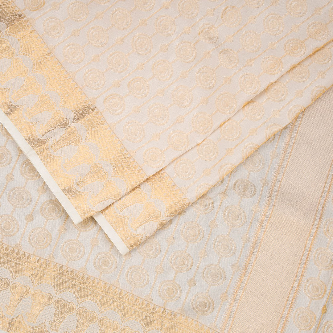 8 X 4 Cream Semi Silk Dhoti, 8 Mozham Semi Silk 4 Mozham Anagavastram and Shirt Material 2.5 Mtrs