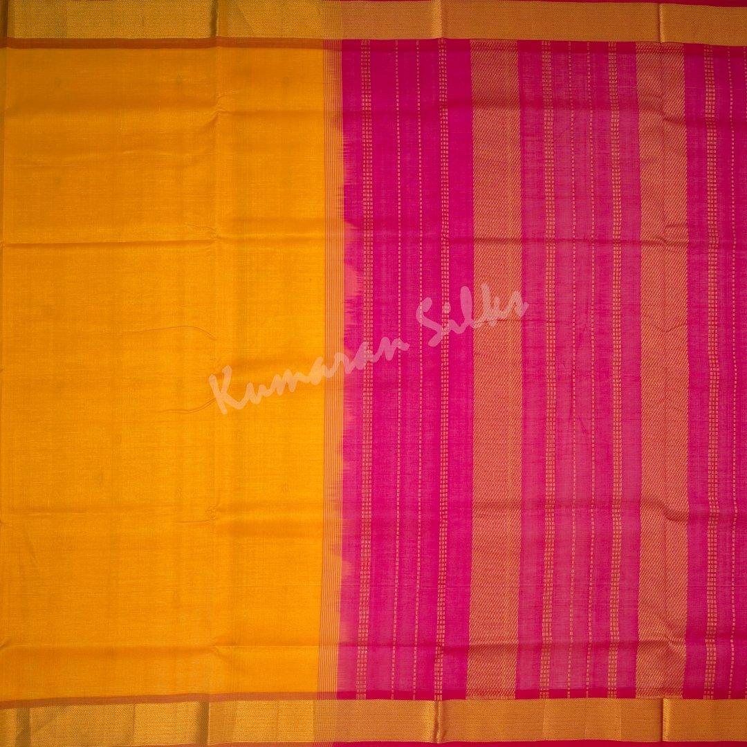 Amirthavarshini Silk Cotton Mango Yellow Plain Saree - Kumaran Silks