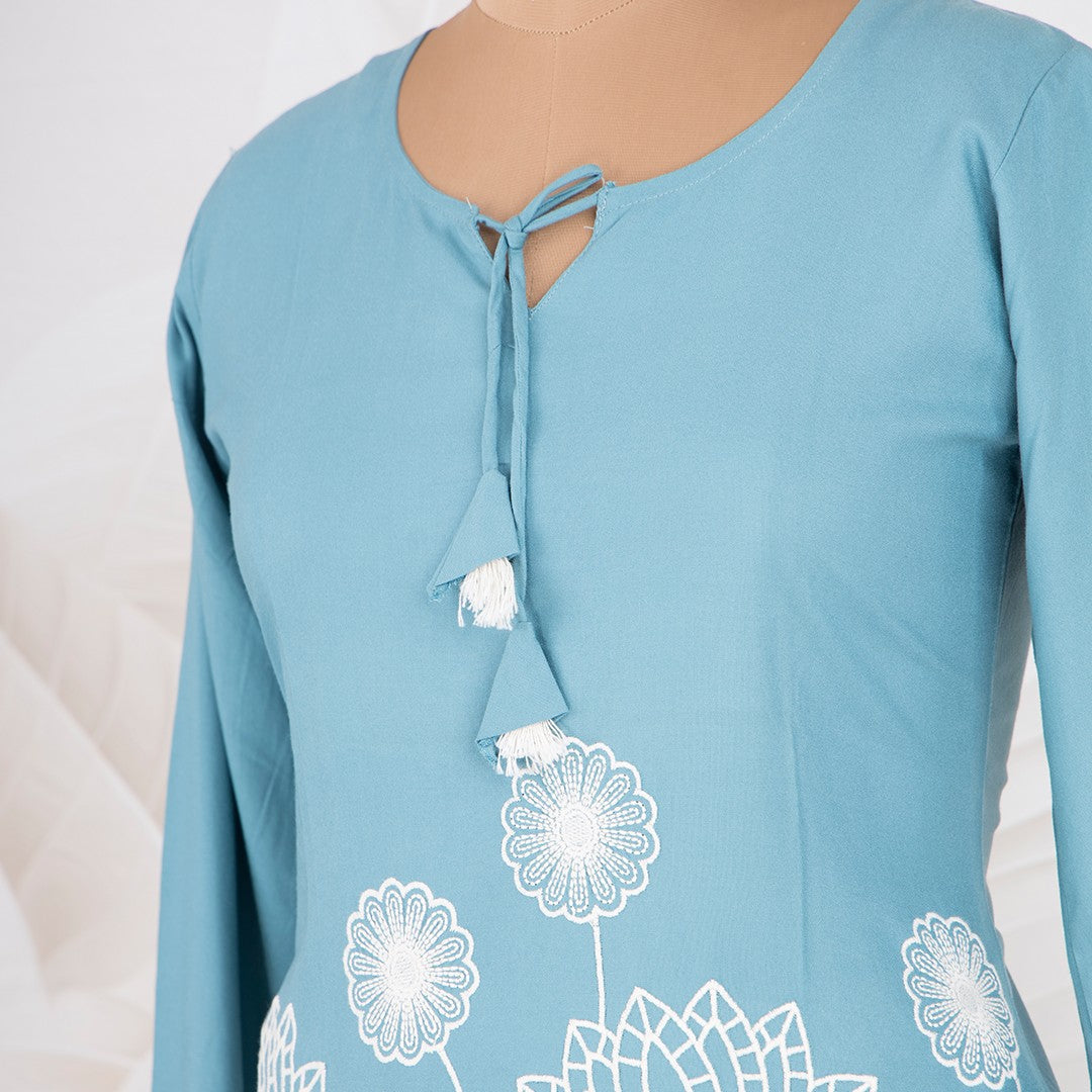 Blue Embroidered Co-ord Set, Rayon Embroidered Top And Pant
