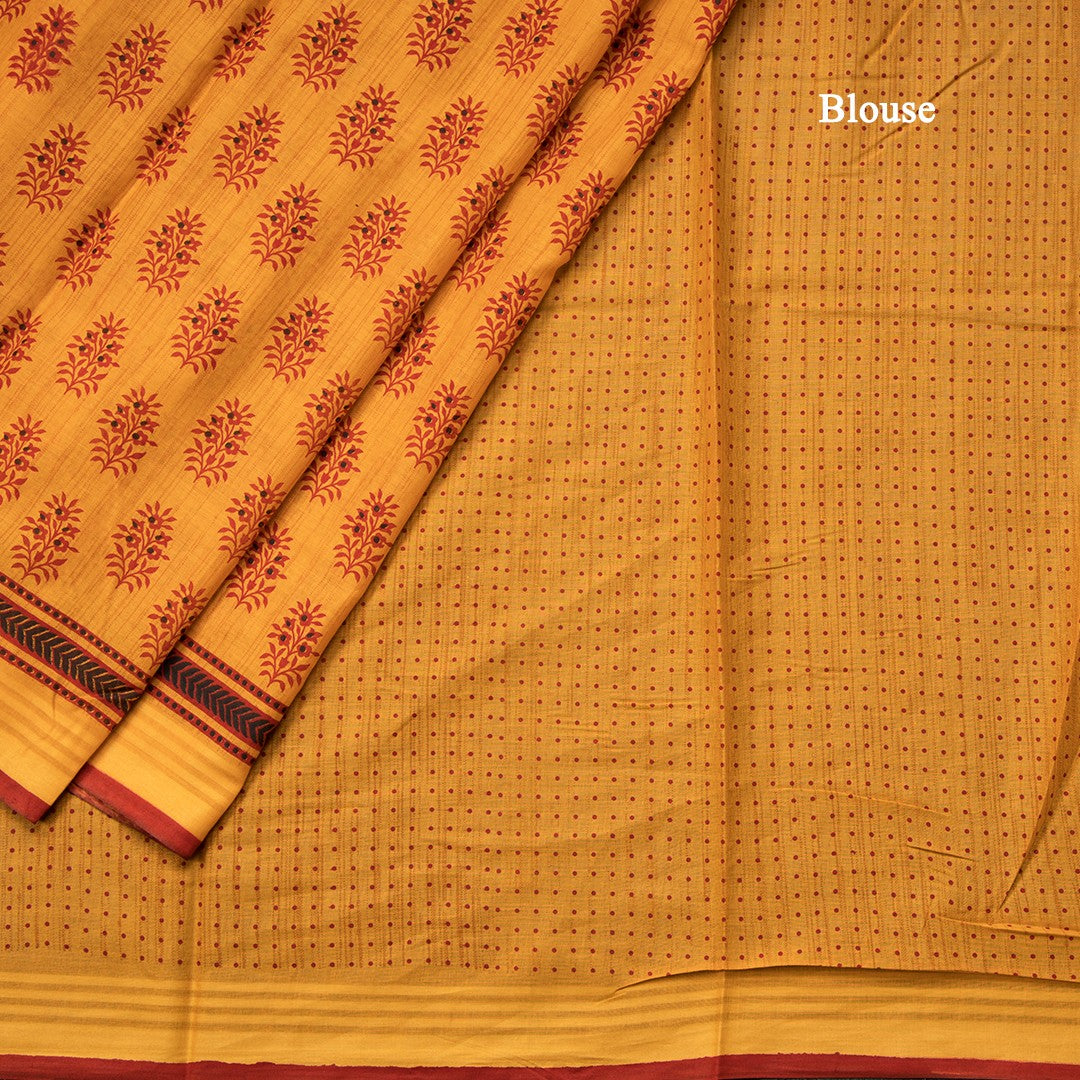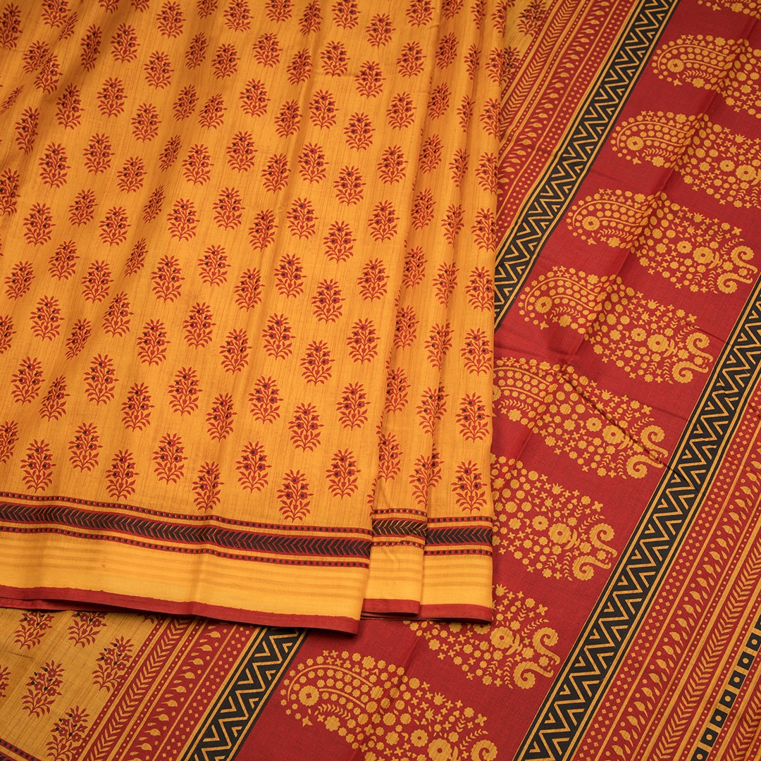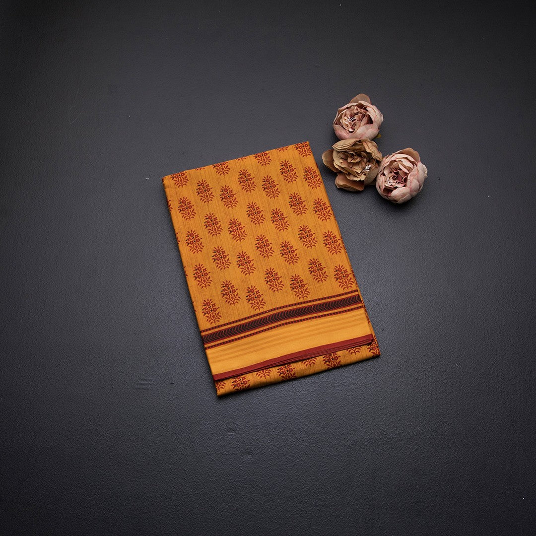 Chanderi Cotton Mango Yellow Printed Saree 02