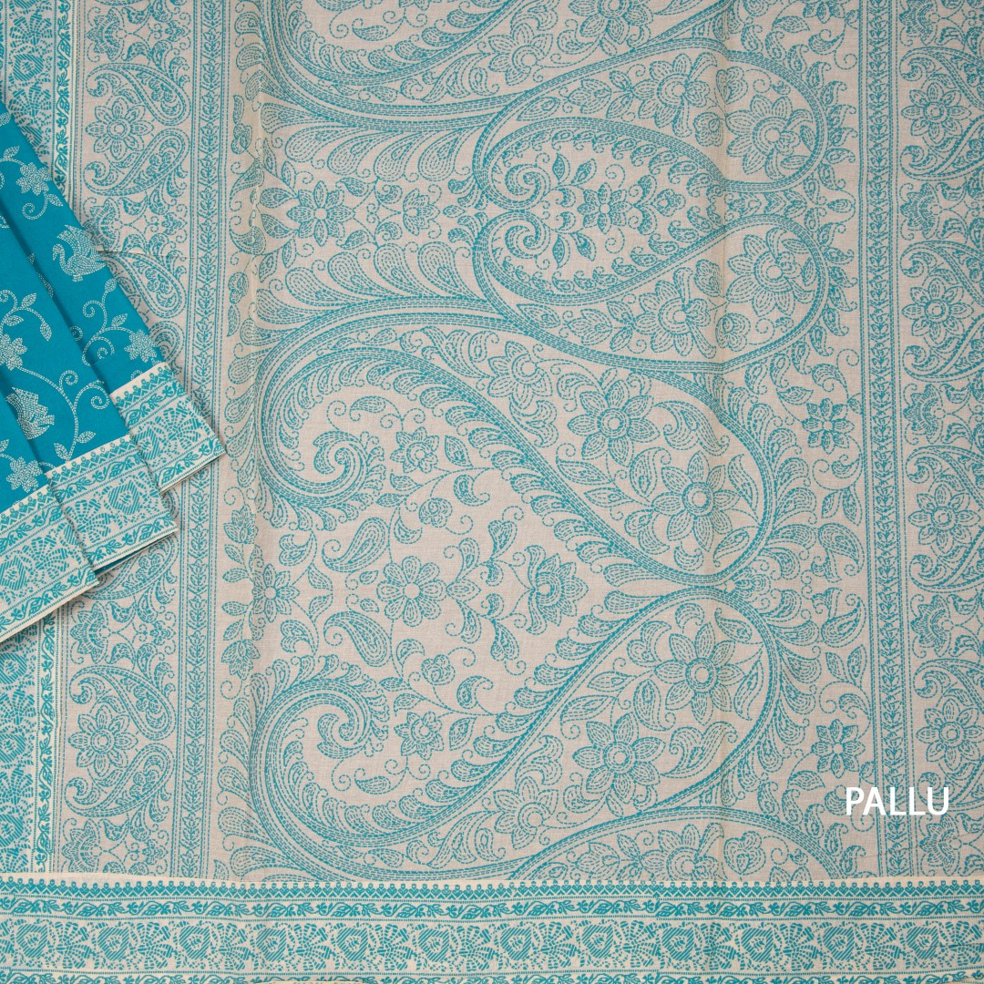 Chanderi Cotton Teal Green Printed Saree