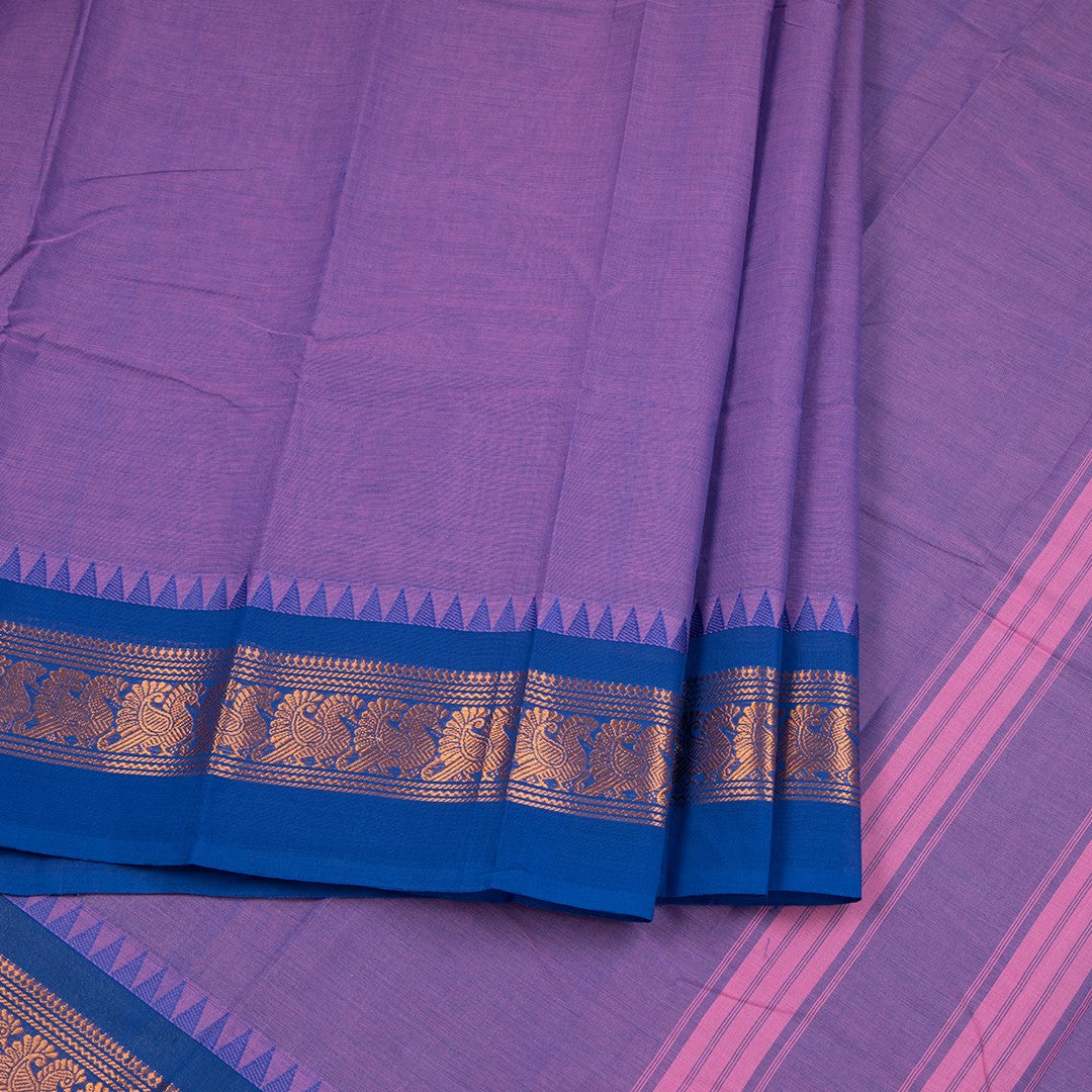 Chettinad Cotton Purple Plain Saree With Temple Border Without Blouse