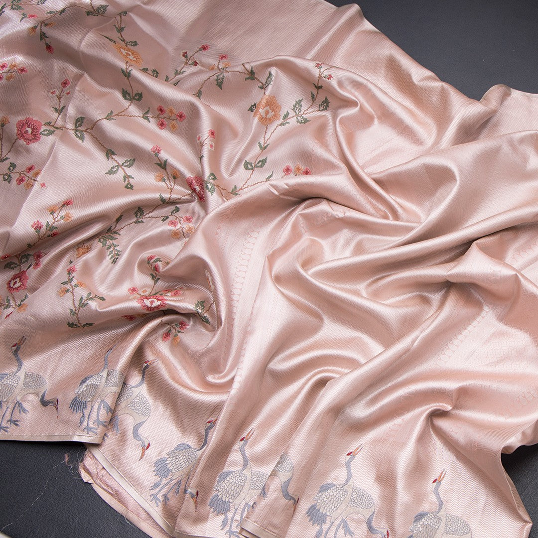 Fancy Silk Peach Traditional Thread Work Saree