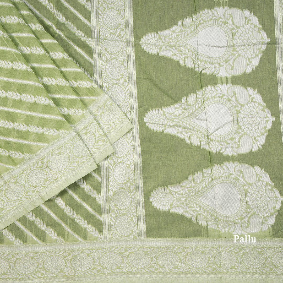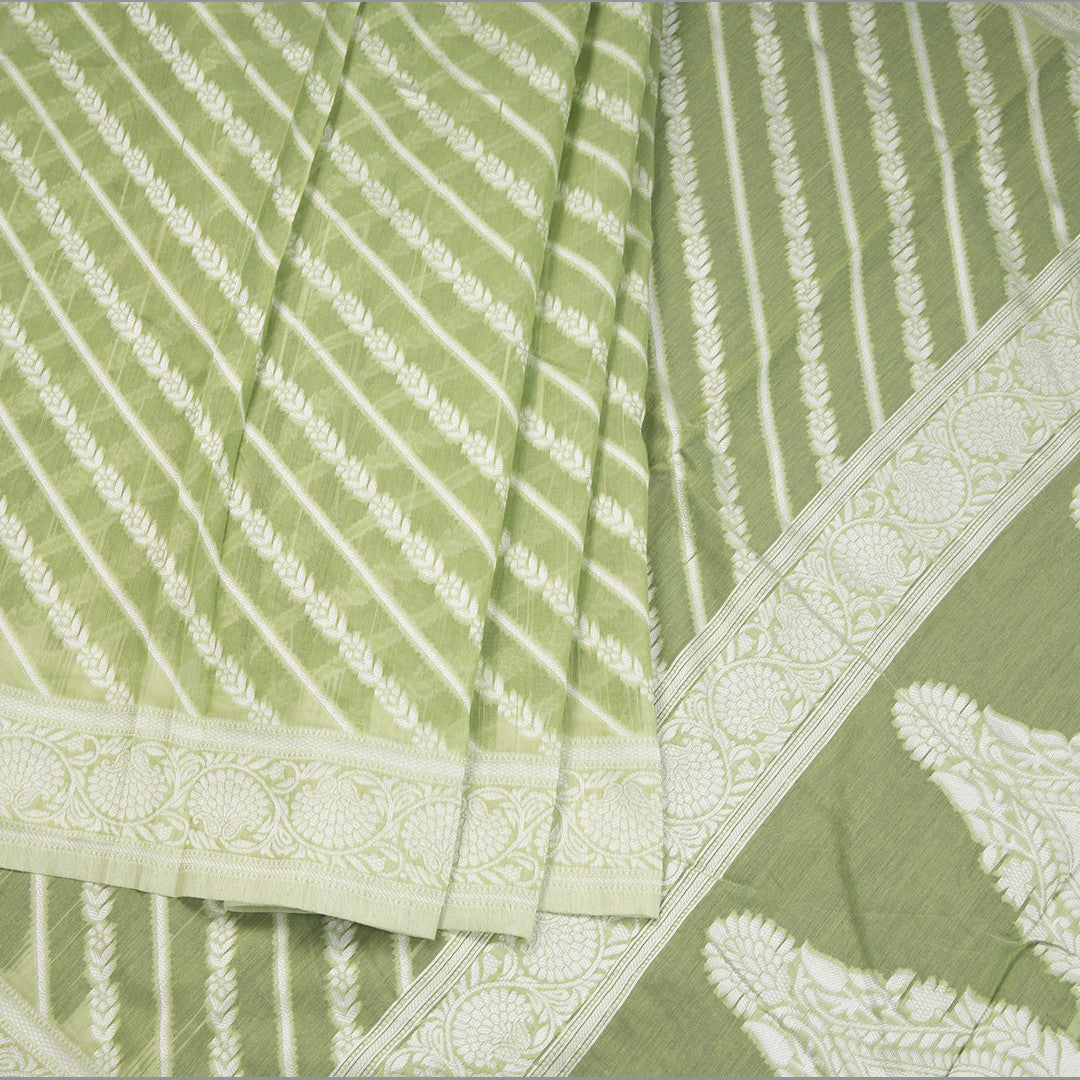 Green Kota Cotton Thread Embroidered Saree 03, Indulge in the vibrant allure of these lustrous Kota cotton sarees, featuring elegant pallus and beautifully crafted borders