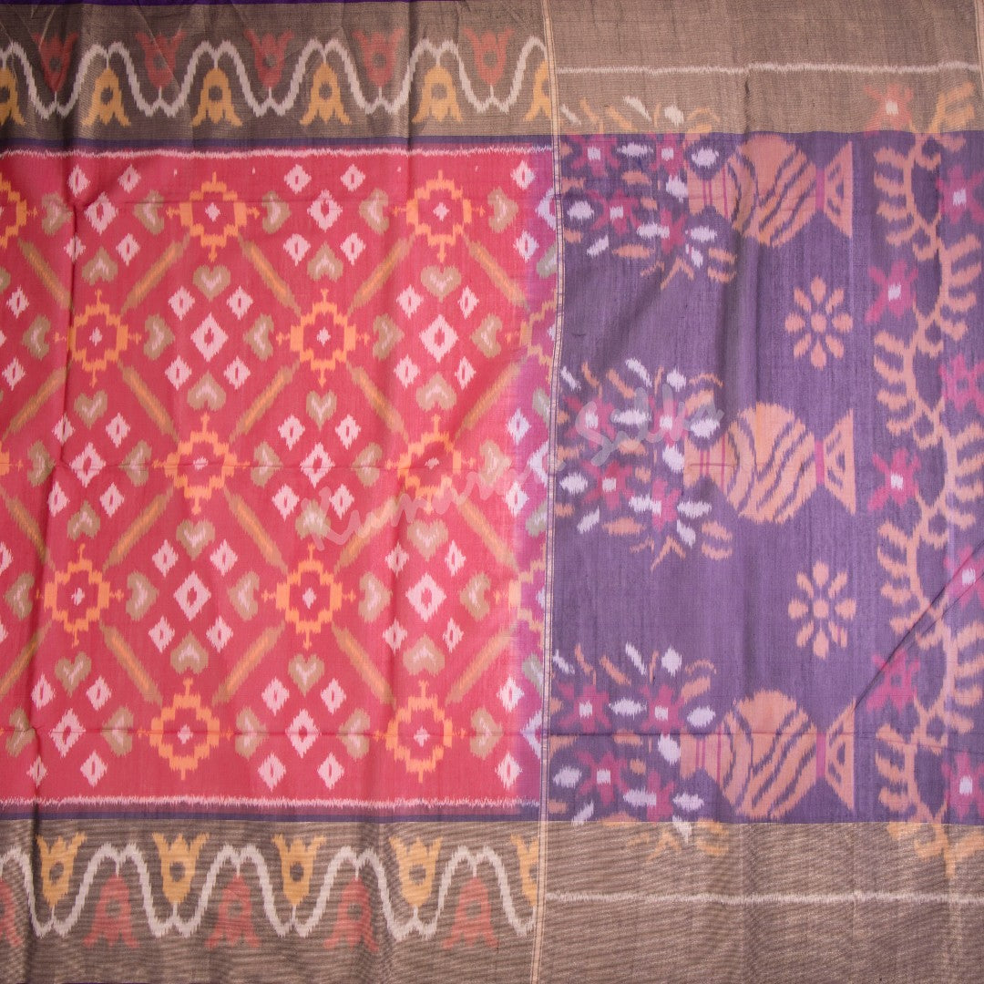 Hot Pink Pochampally Silk Cotton Ikkat Printed Saree