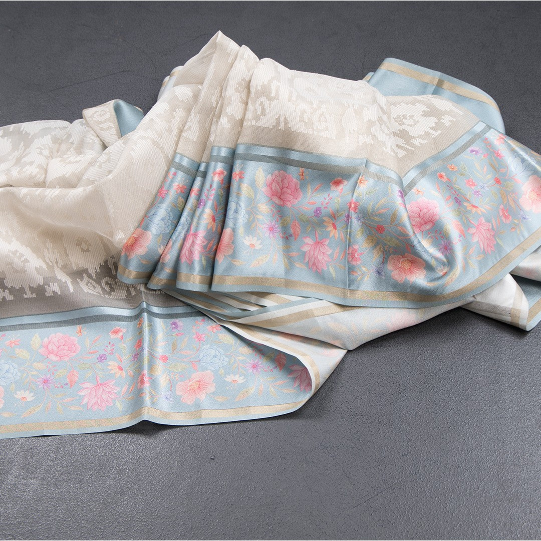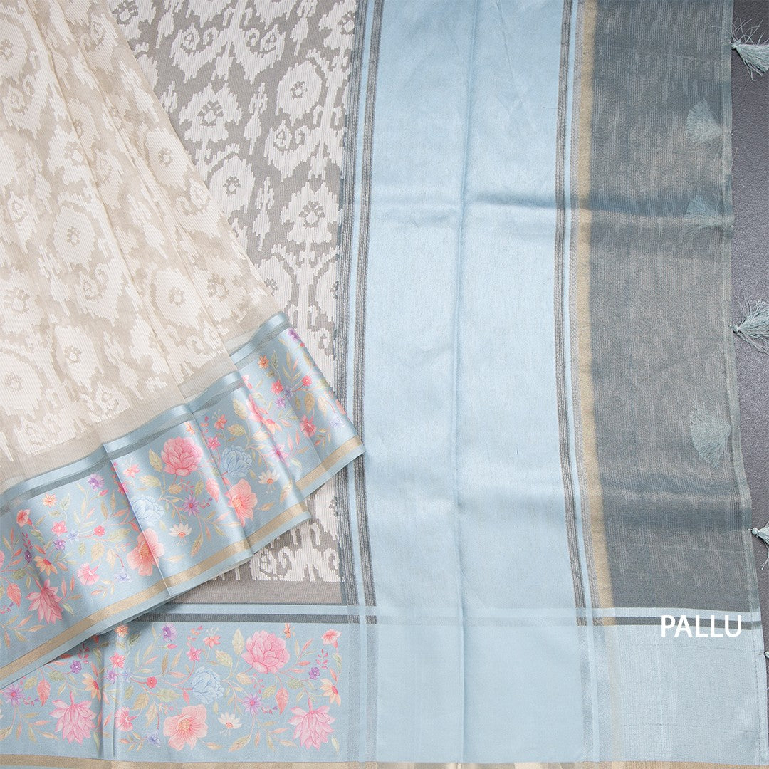 Kora Cream Saree With Satin Border 03