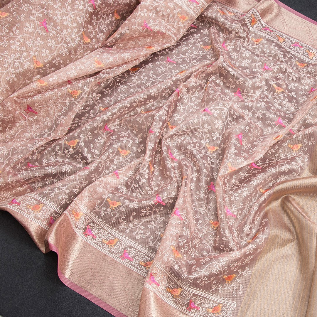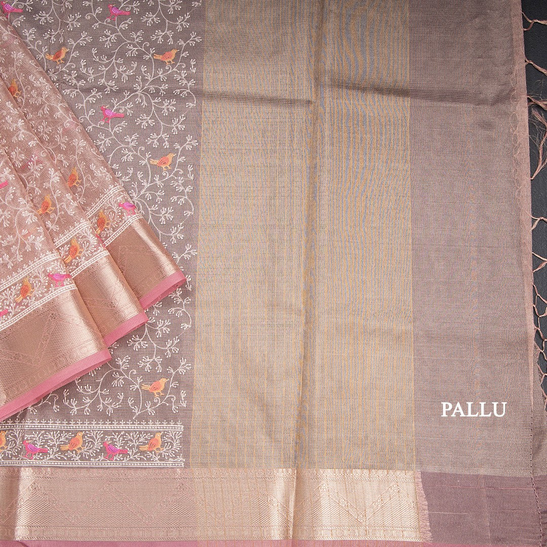 Kota Light Pink Thread Work Saree With Zari Border