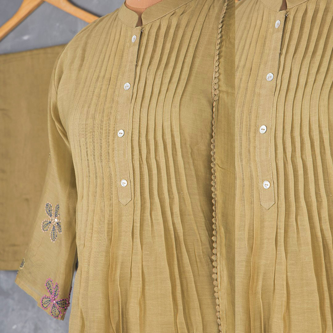 Olive Green Thread Embroidered Readymade Salwar Suit