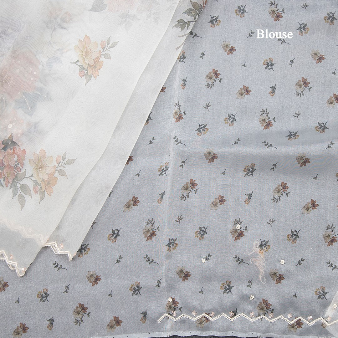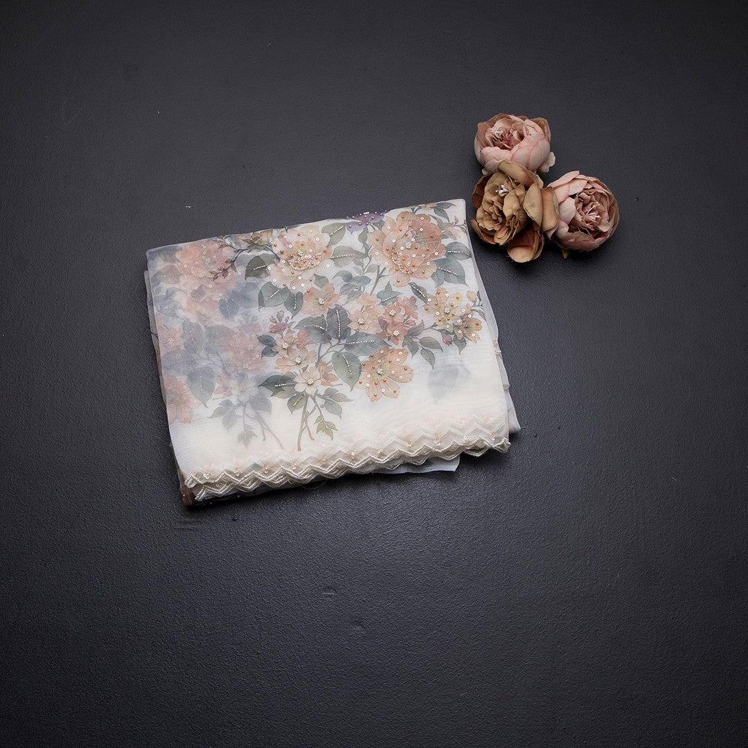 Organza Cream Floral Printed Saree