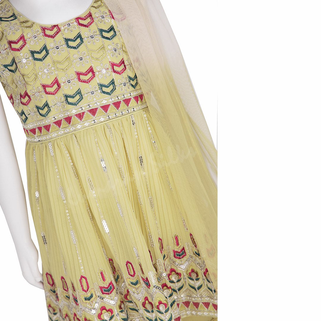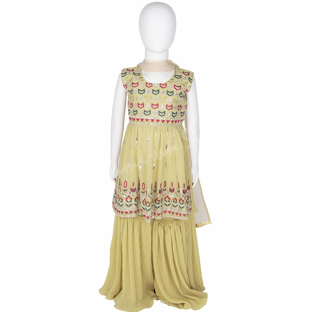 Pista Green Embroidered Palazzo Set, Kids and teens can be equally dressed like women. Let the little ladies at your home get an ethnic revamp of their wardrobe this season and sizzle the Indian way.
