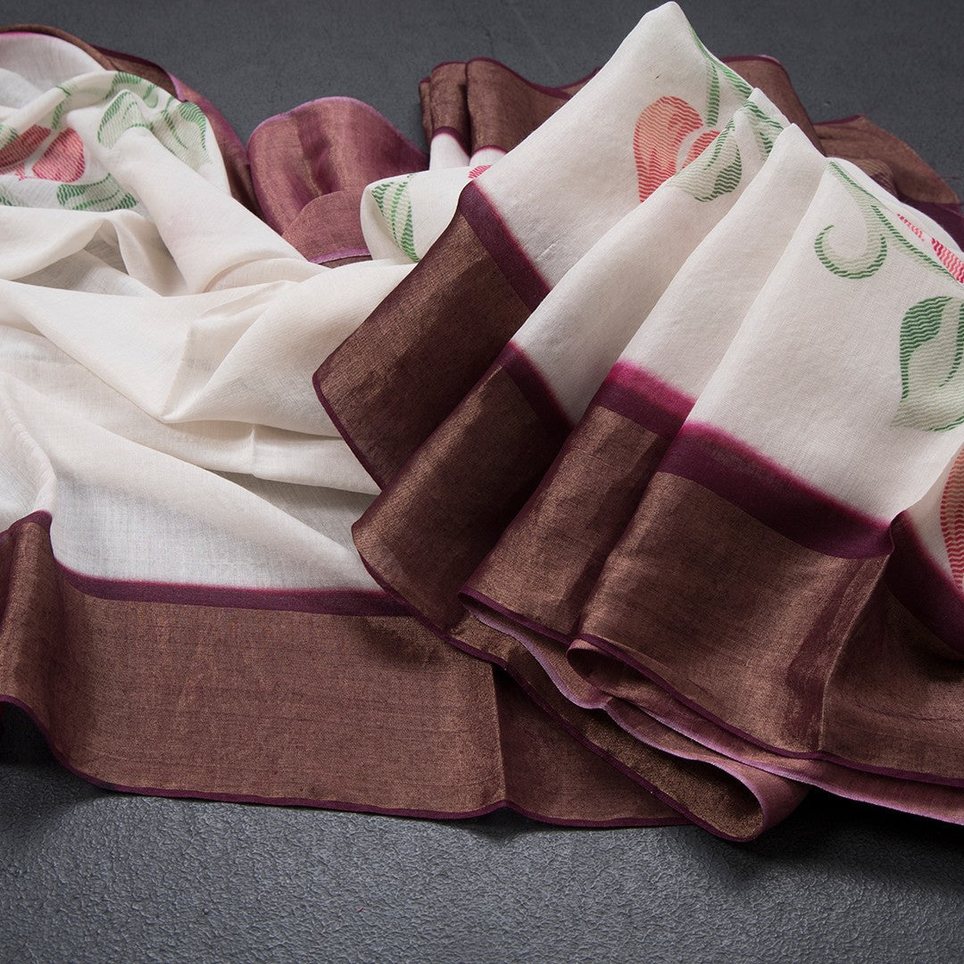 Pure Tussar Cream Floral Printed Saree 03