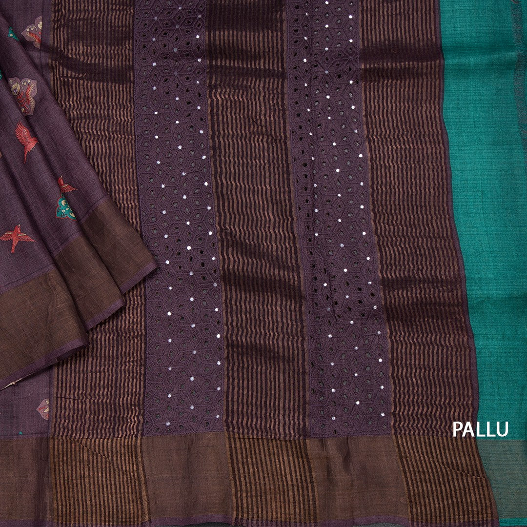Pure Tussar Dark Purple Printed Saree