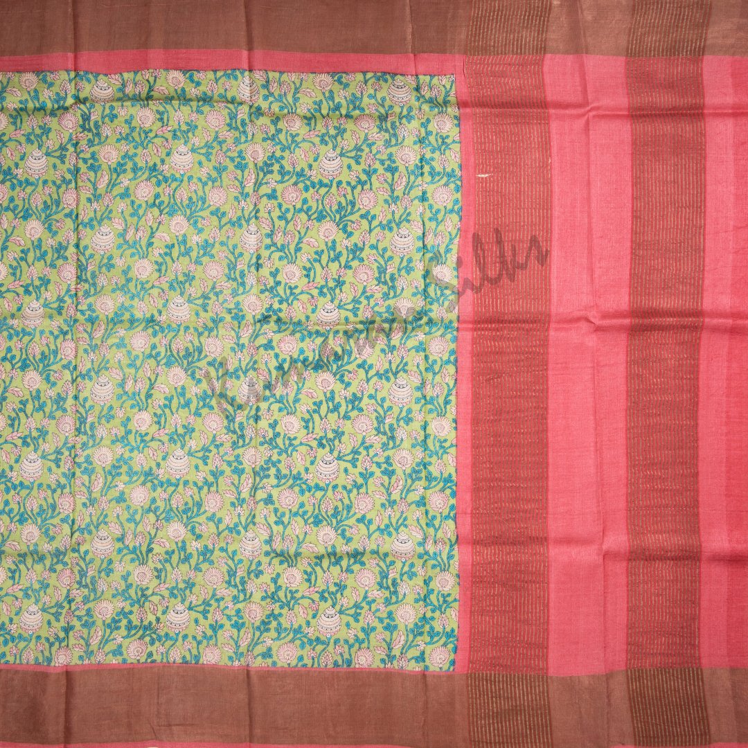 Pure Tussar Green Floral Printed Saree 03 - Kumaran Silks