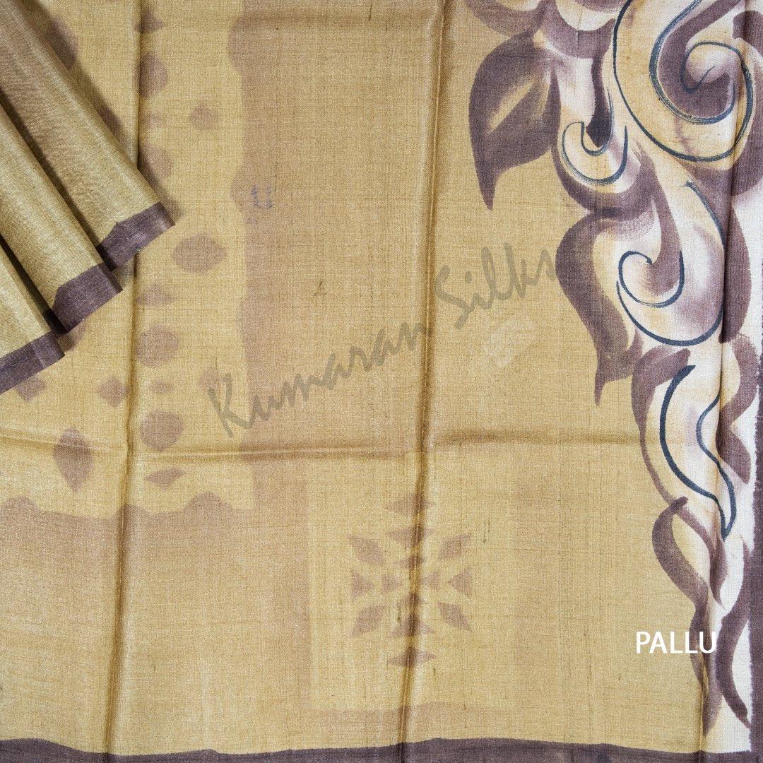 Pure Tussar Light Brown Floral Printed Saree - Kumaran Silks