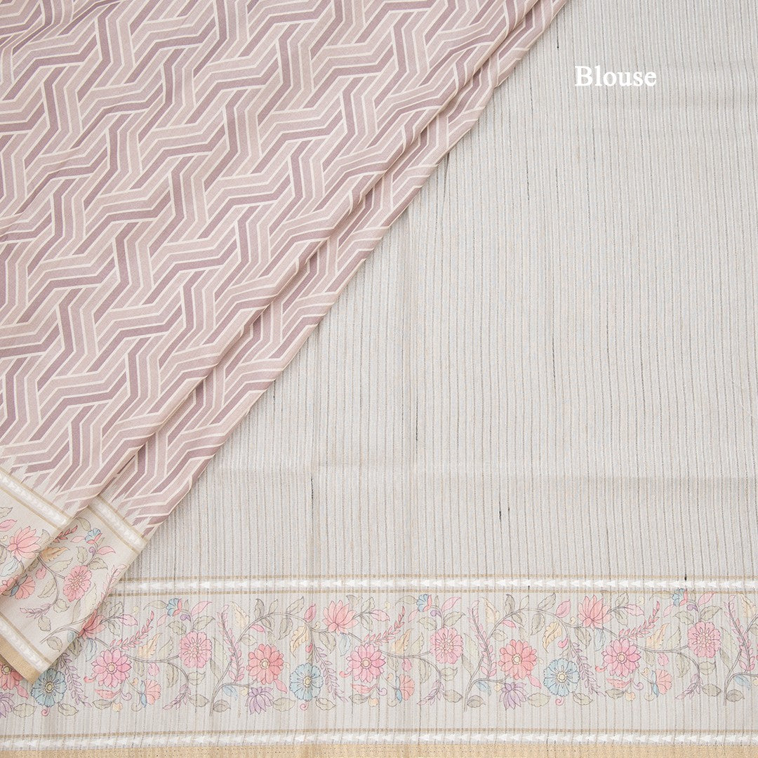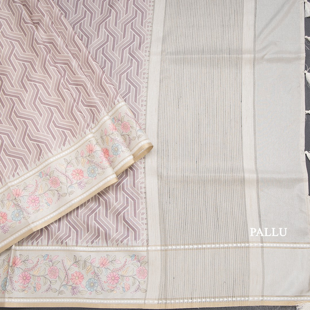 Raw Silk Light Brown Printed Saree With Floral Border