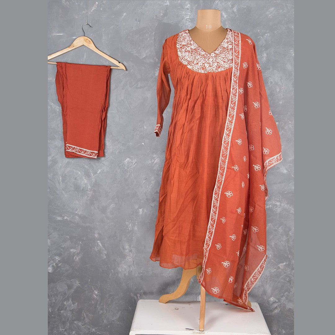 Rust Orange Cotton Thread Readymade Salwar Suit