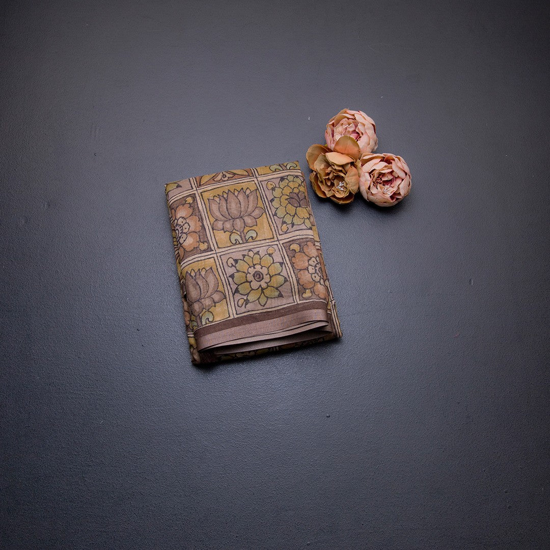 Semi Linen Brown Floral Printed Saree 03