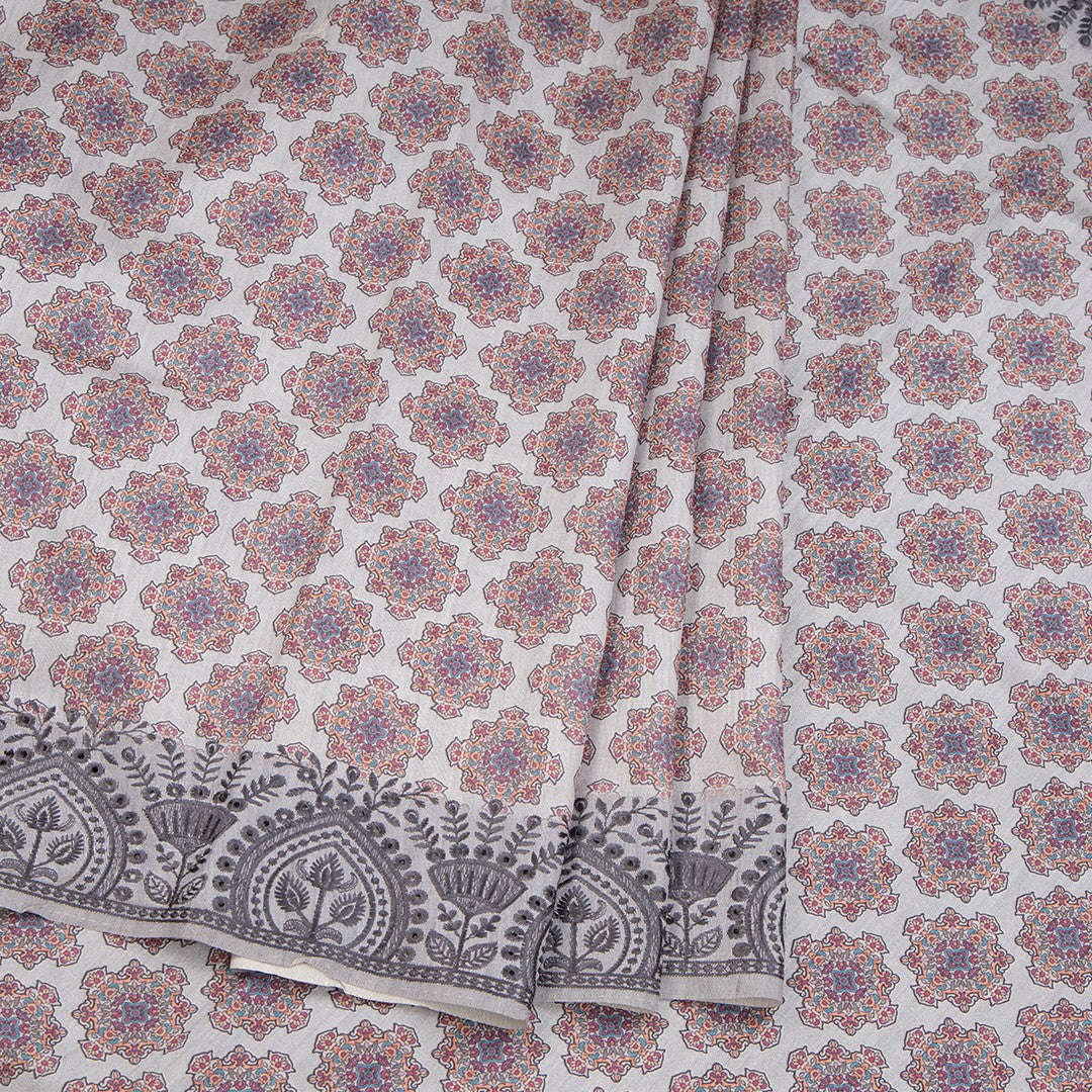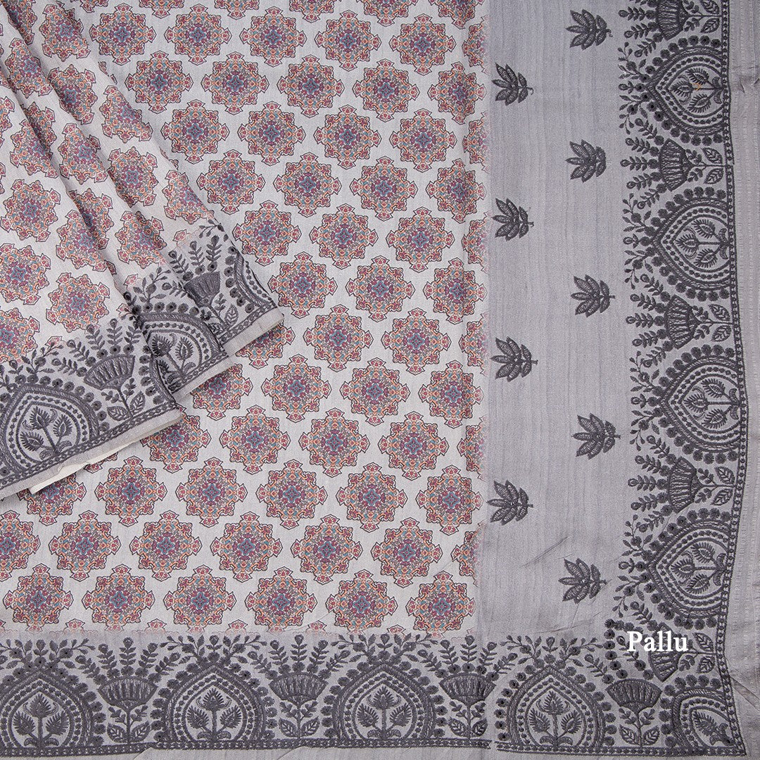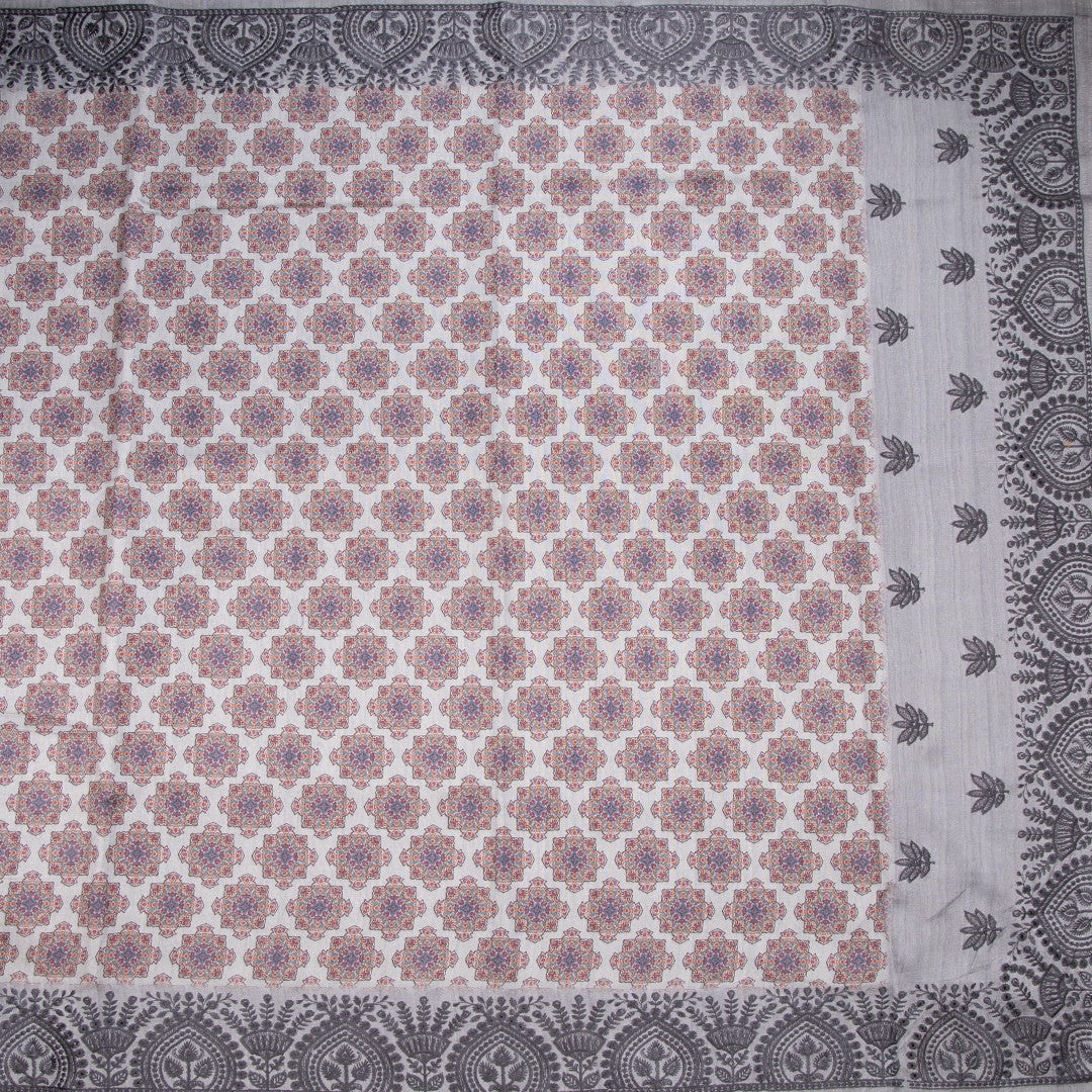Semi Raw Silk Grey Printed Saree 09