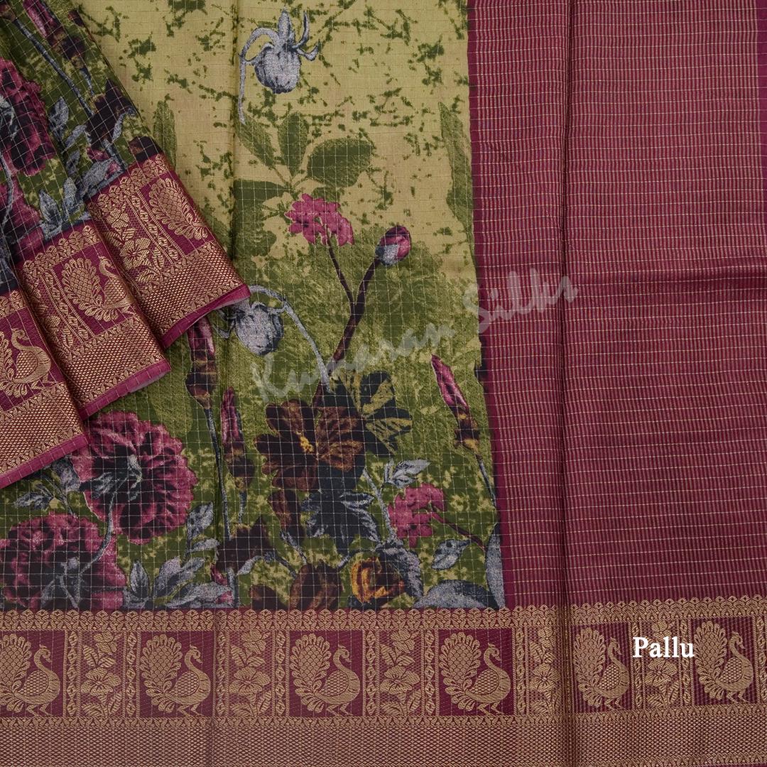 Semi Raw Silk Lime Green Floral Printed Saree
