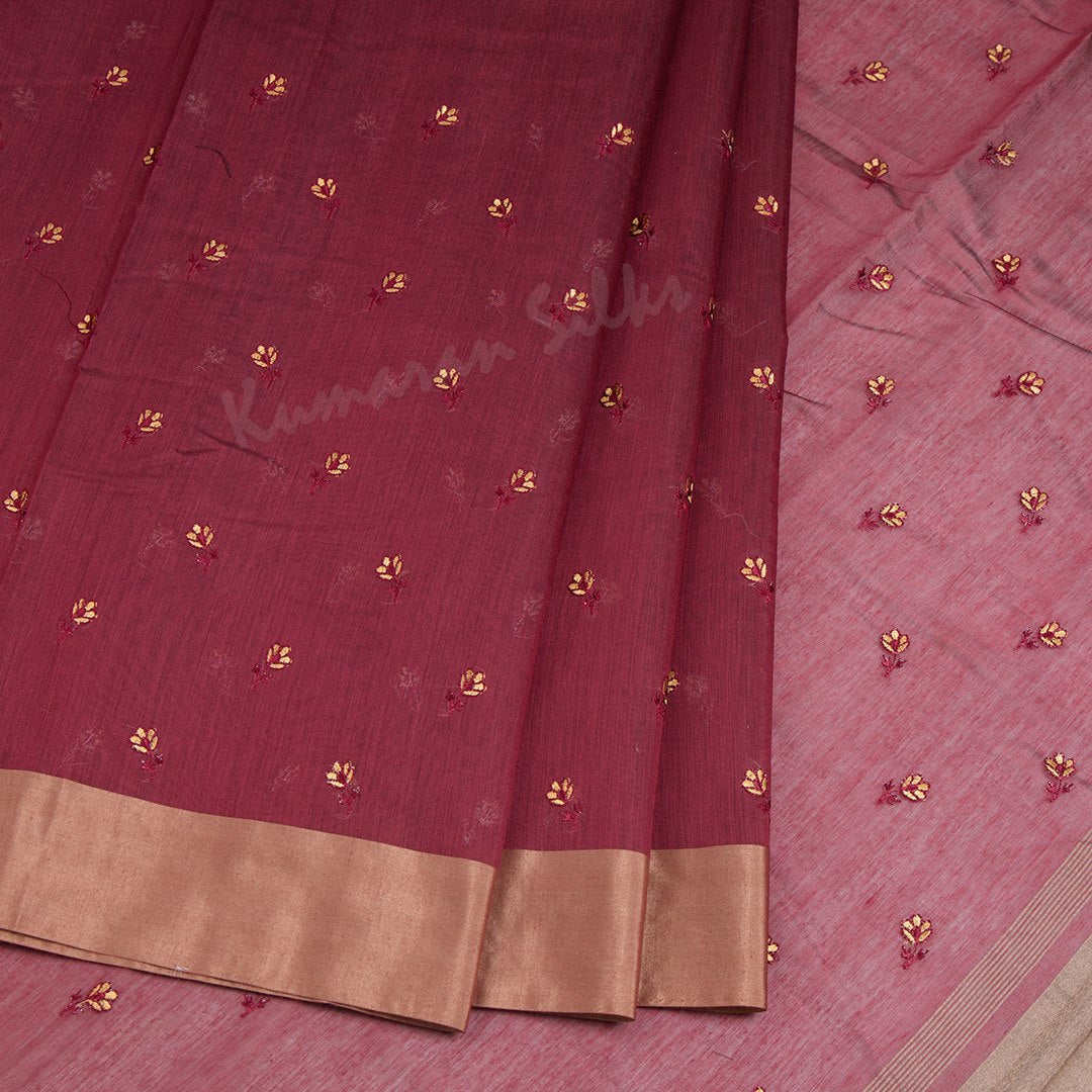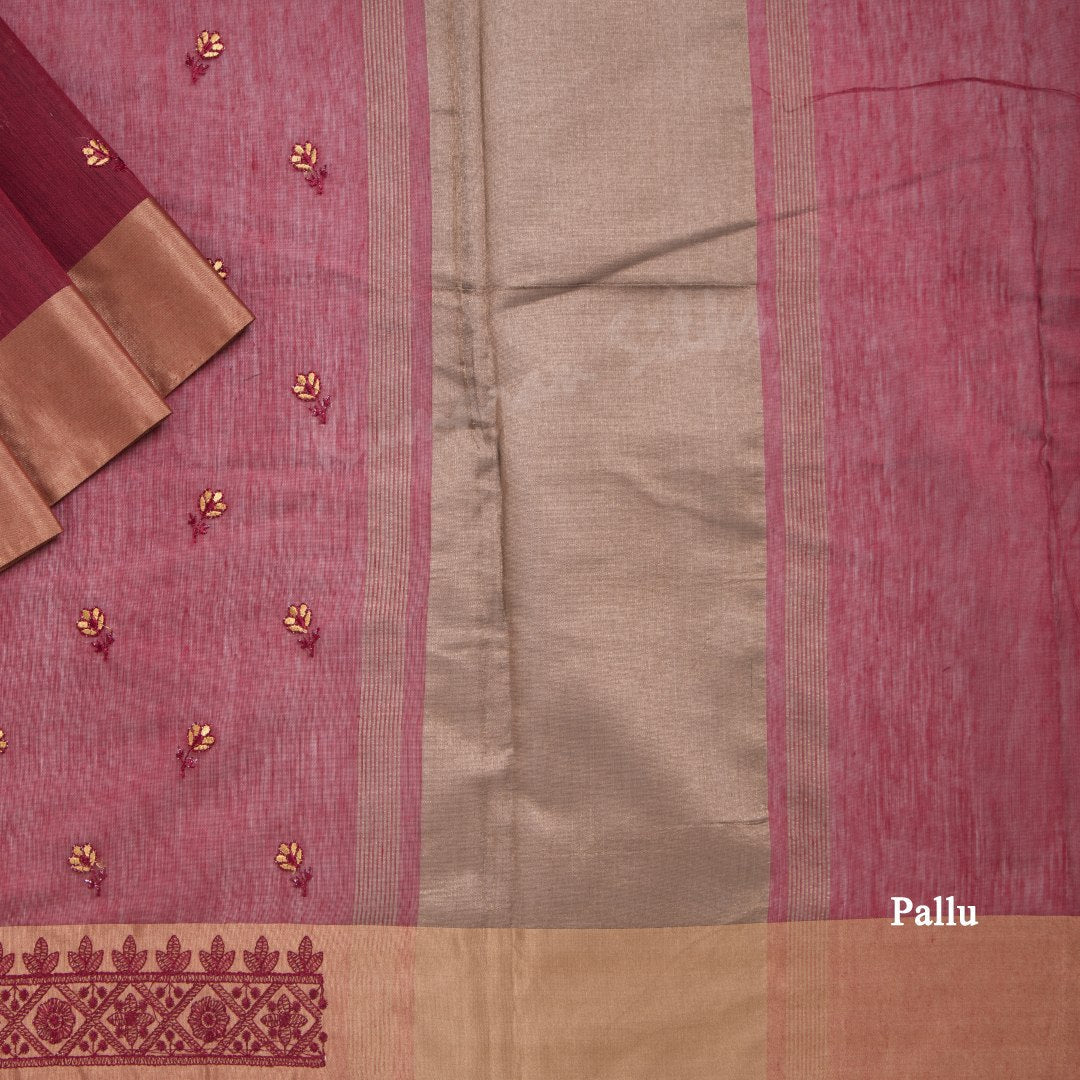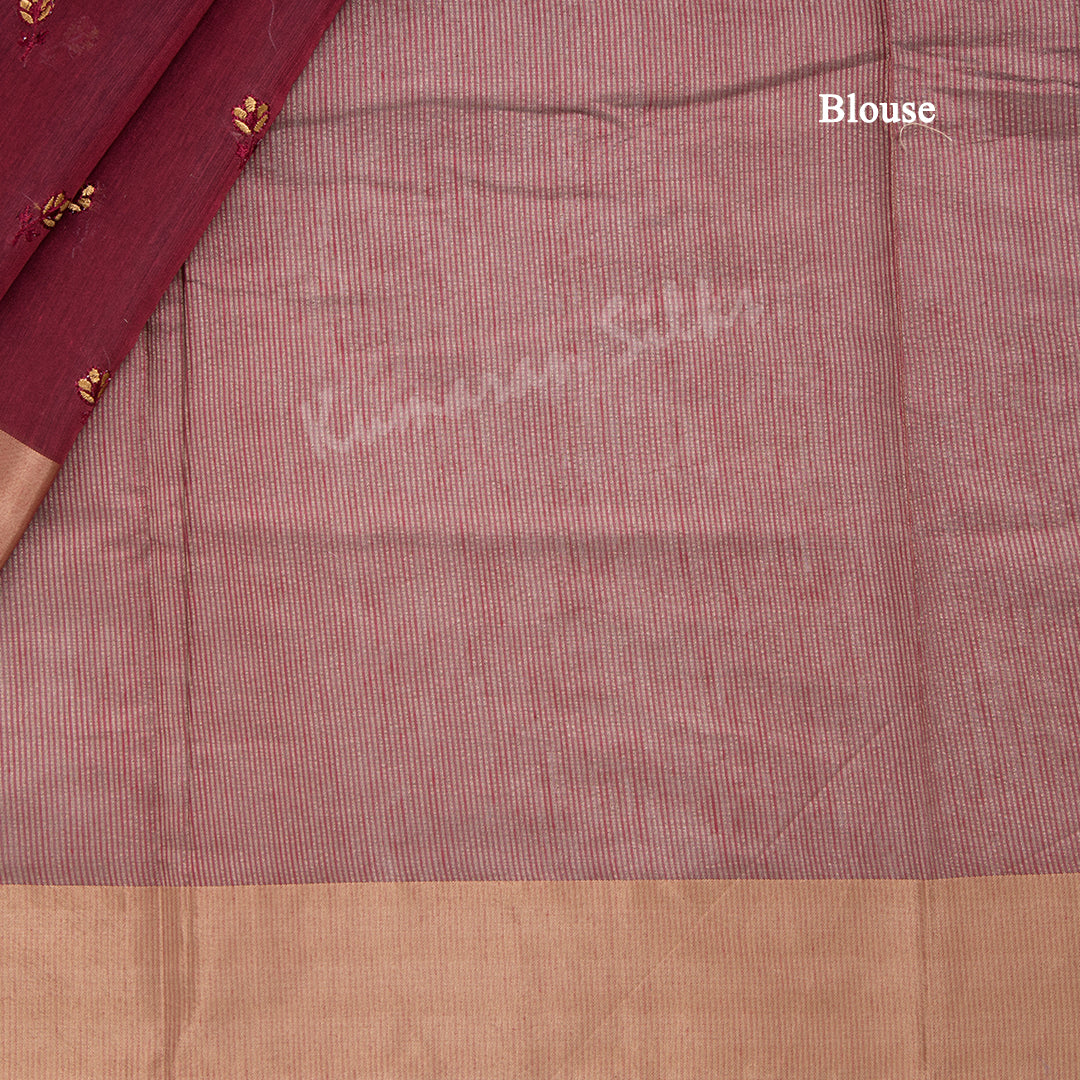 Semi Raw Silk Maroon Thread embroidered Saree 02