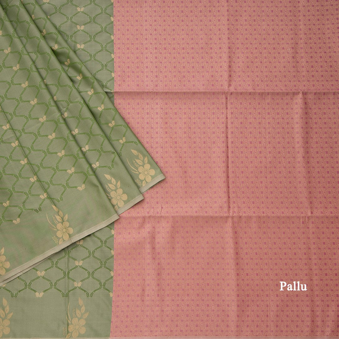 Semi Soft Silk Green Thread Work Saree With Zari Buttas