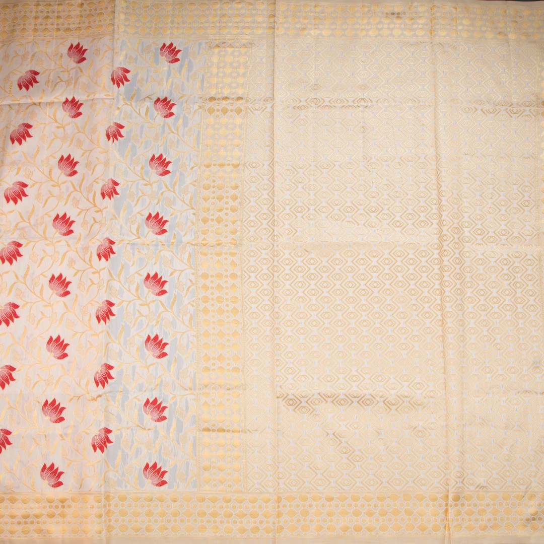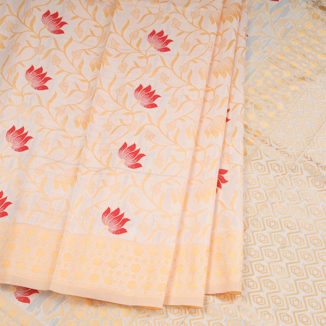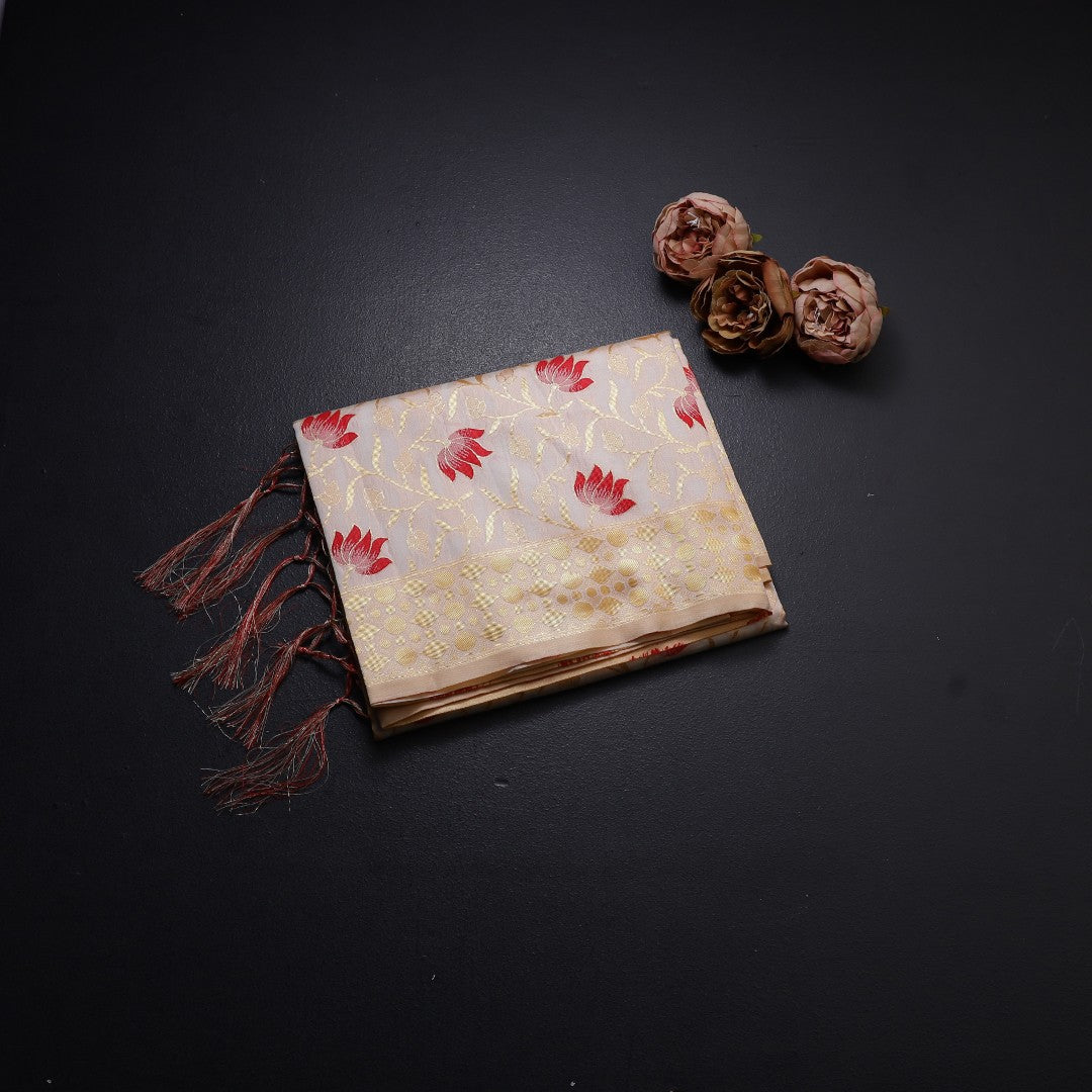 Semi Tussar Cream Floral Embossed Saree