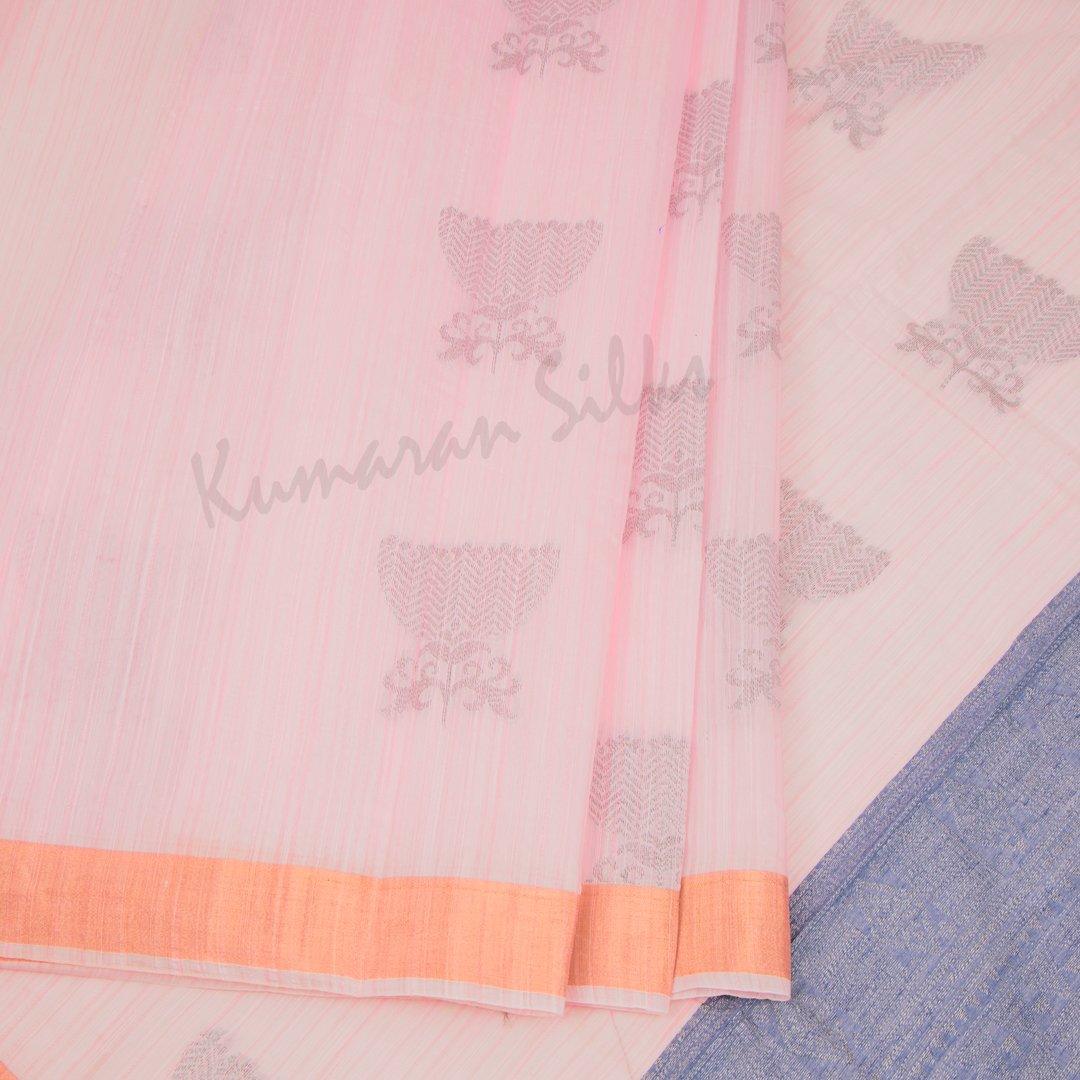 Silk Cotton Rose Pink Embossed Saree - Kumaran Silks
