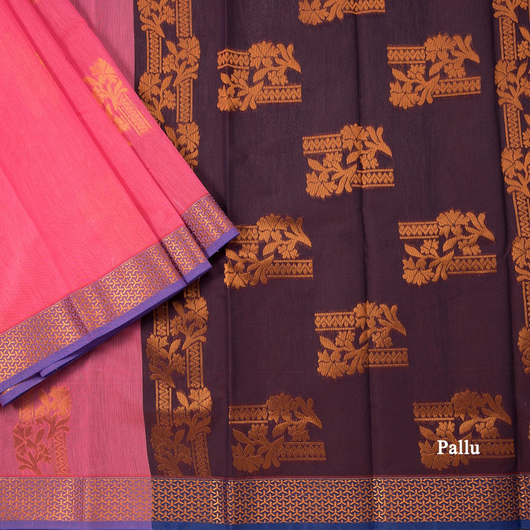 Silk Cotton Rose Pink Zari Worked Saree 05