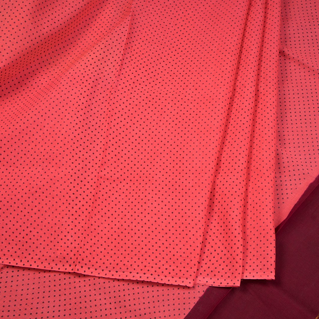Sungudi Cotton Dark Peach Printed Saree Without Blouse 03