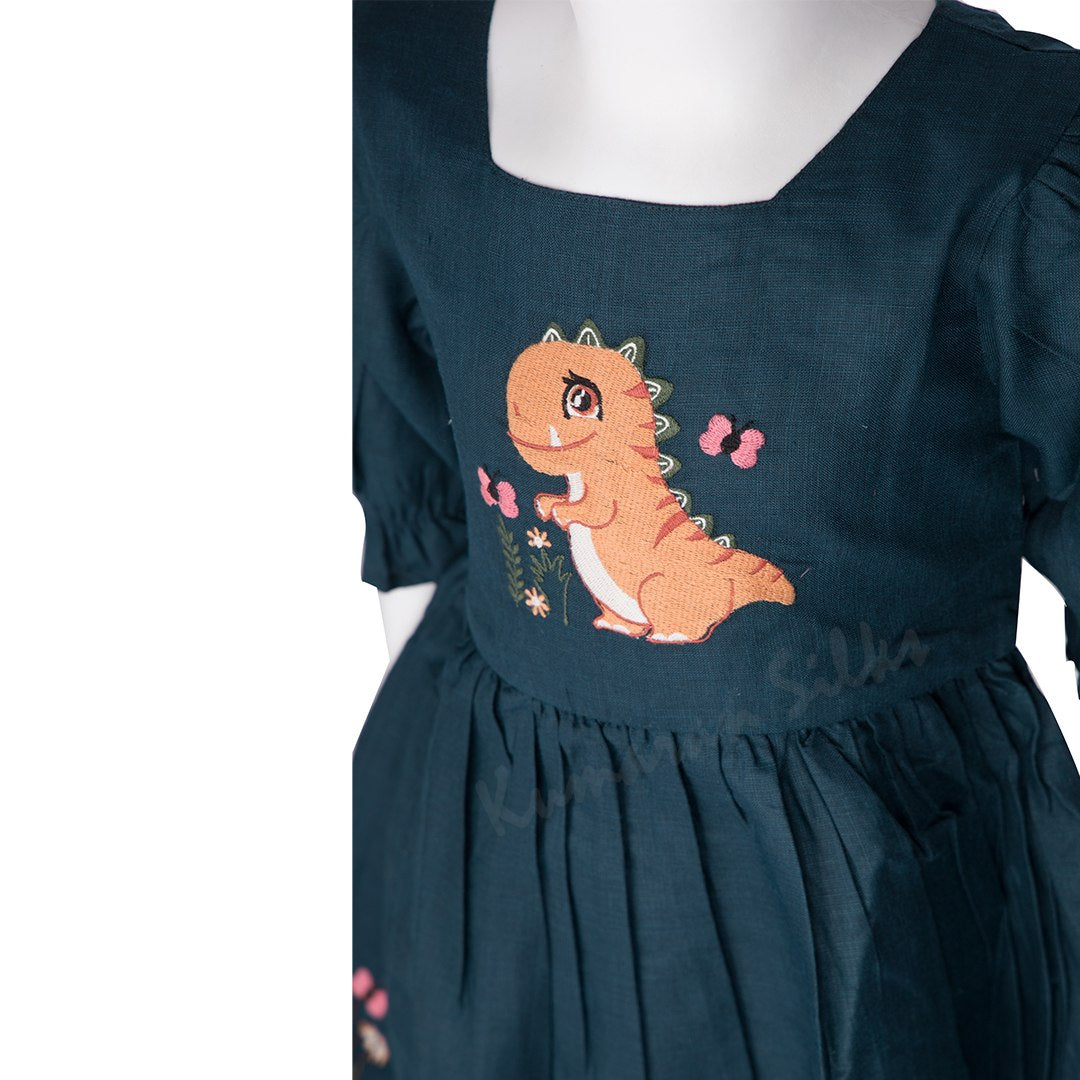 Teal Blue Embroidered Short Frock, This cute dress will make your baby comfortable throughout the party. Featuring a back zip closure, a corsage and a chic design to make her look beautiful.
