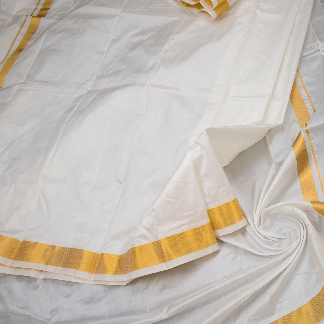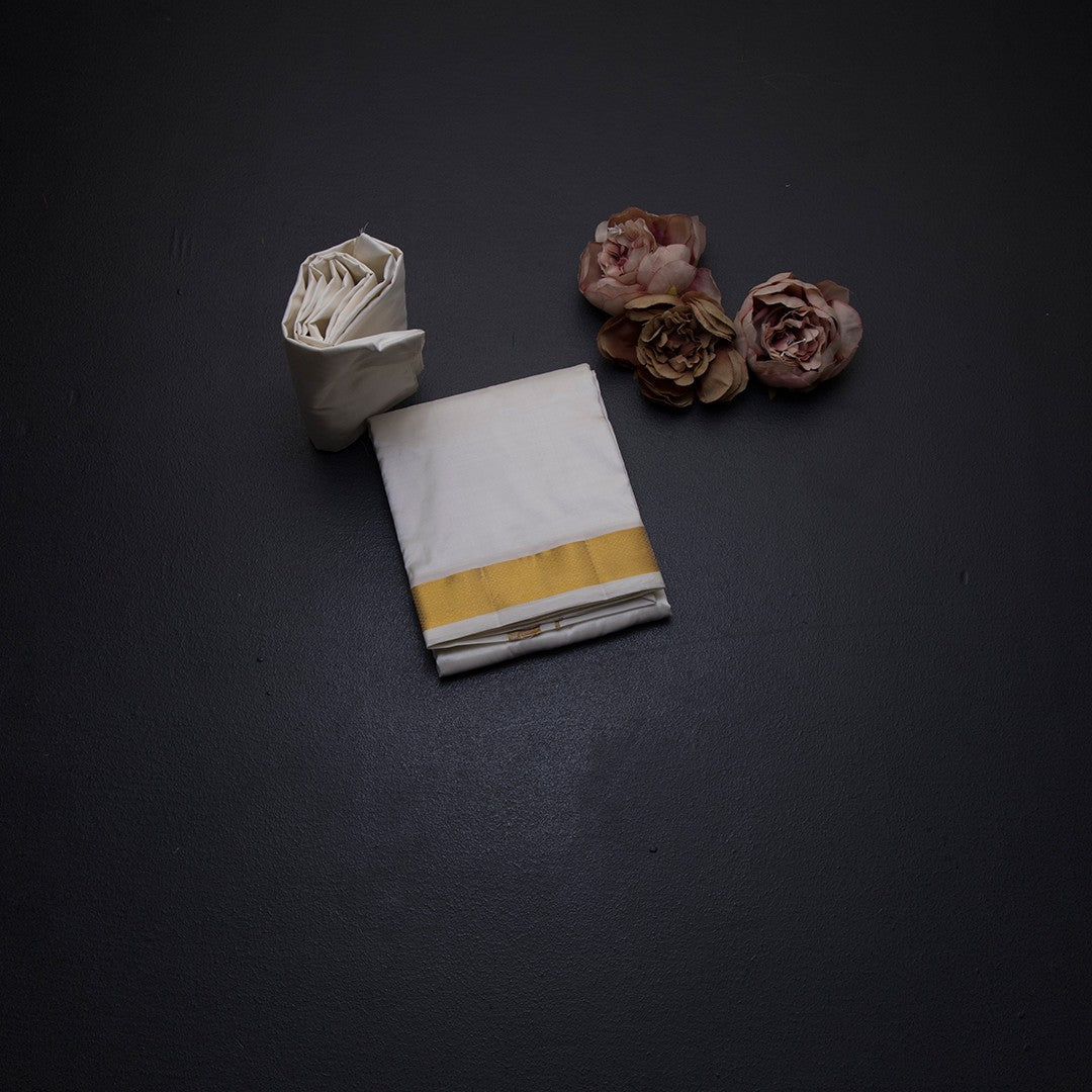 8 Mozham Cream Plain Silk Dhoti And Matching Shirt Material
