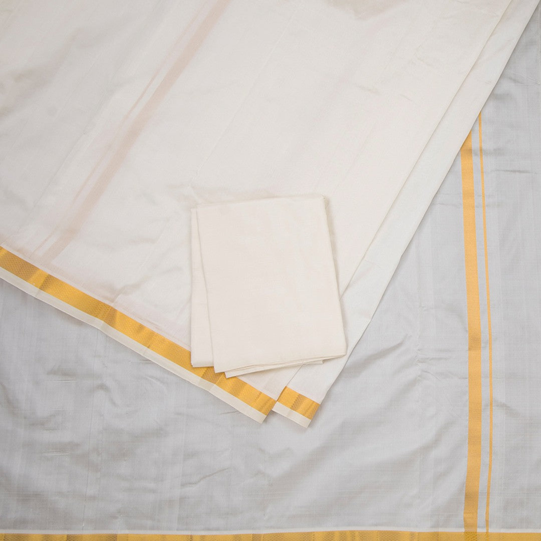 8 X 4 Cream Plain Silk Dhoti With Angavastram And Matching Shirt Material 02