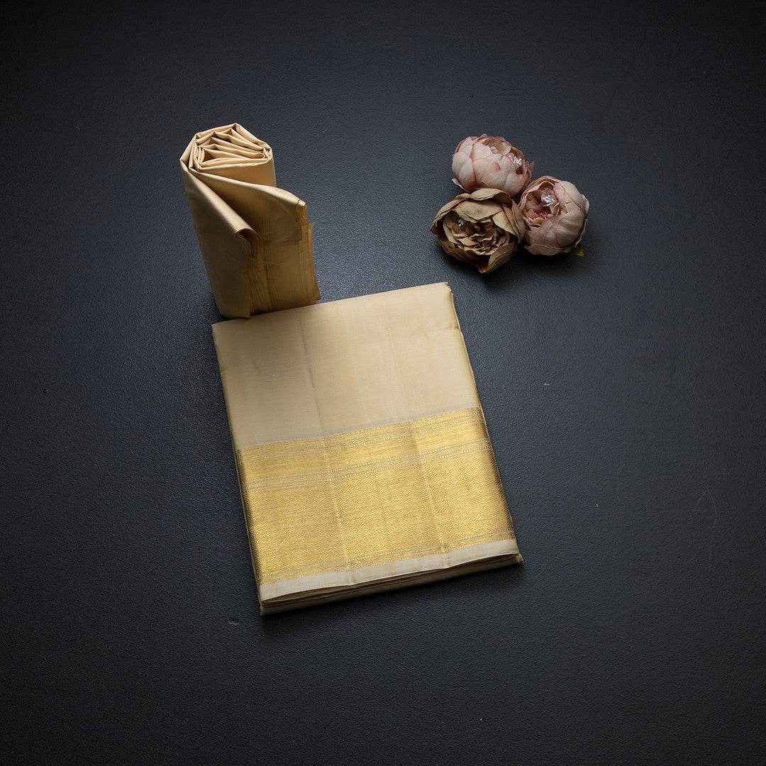 8 X 4 Plain Sandal Silk Dhoti With Angavastram and Matching Shirt Material 02