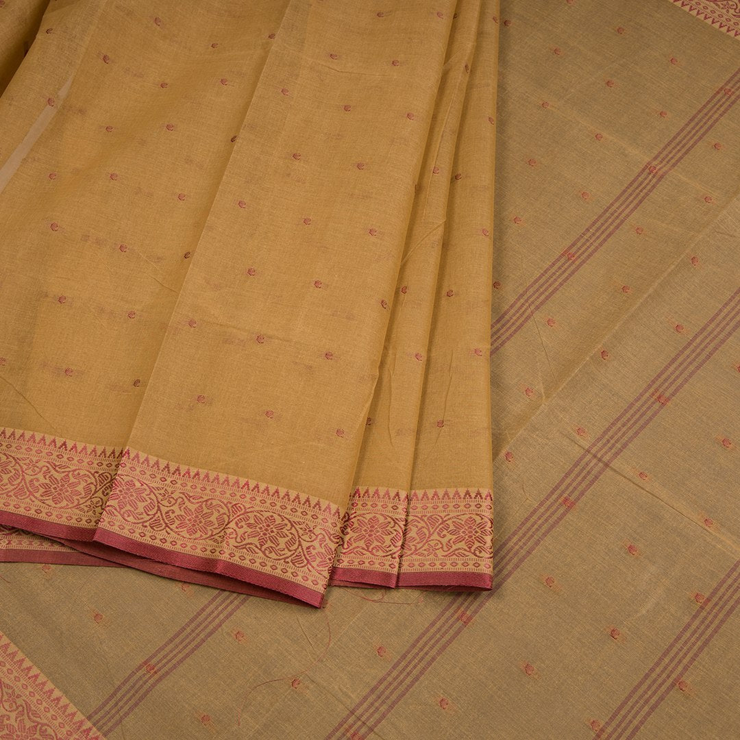 Bengali Cotton Light Golden Brown Thread Embossed Saree Without Blouse, Cotton sarees have their own charm, and there are multiple reasons to add this ethnic wear to your wardrobe, especially during summers