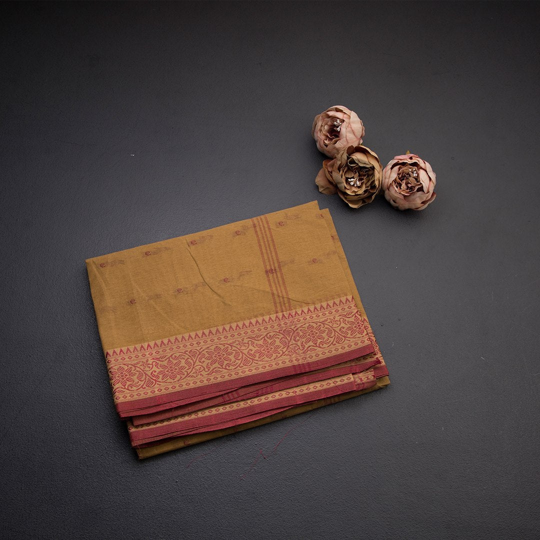 Bengali Cotton Light Golden Brown Thread Embossed Saree Without Blouse