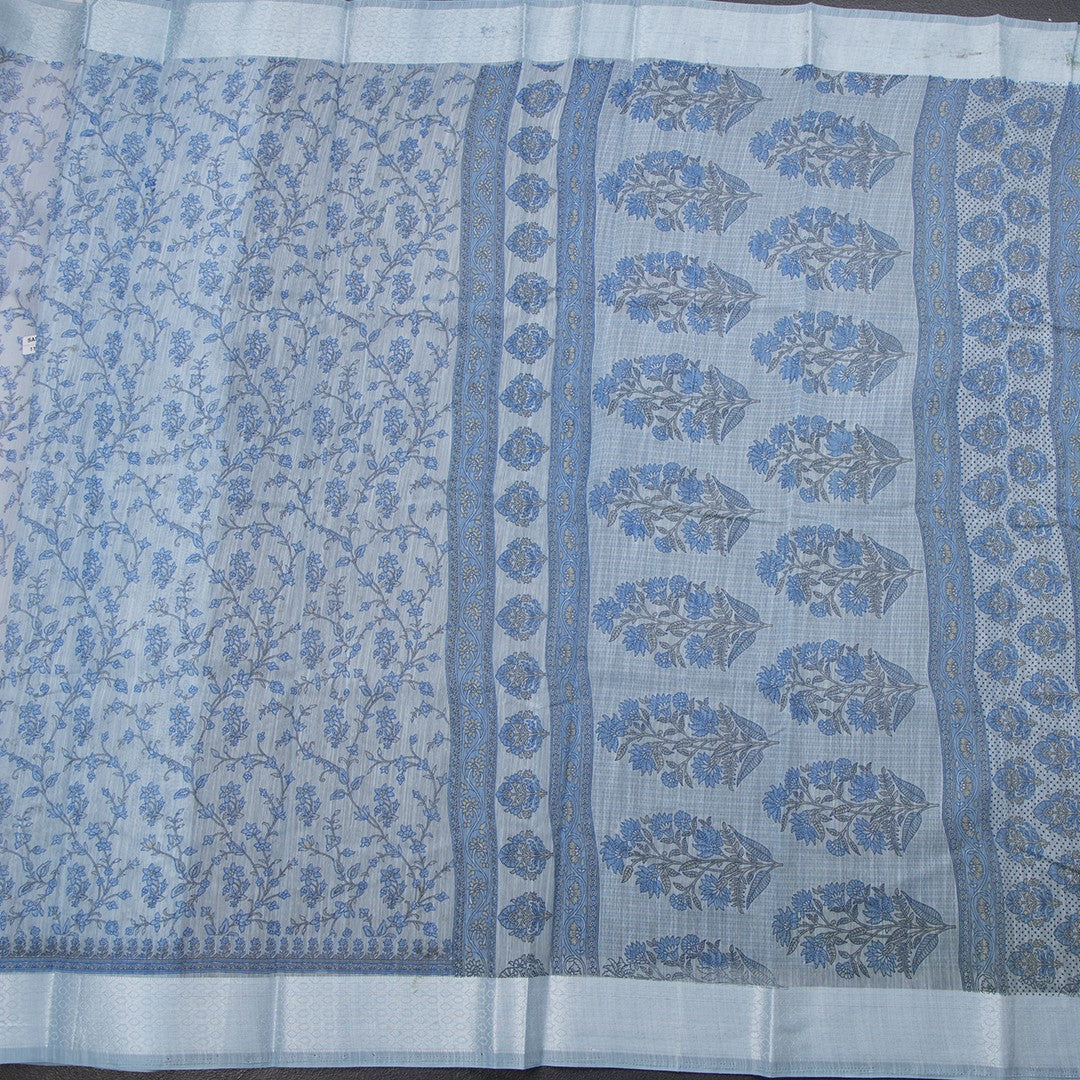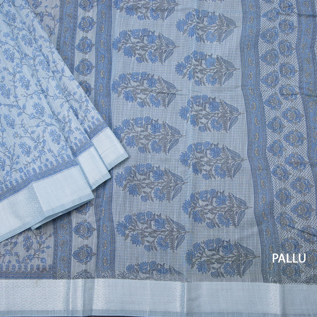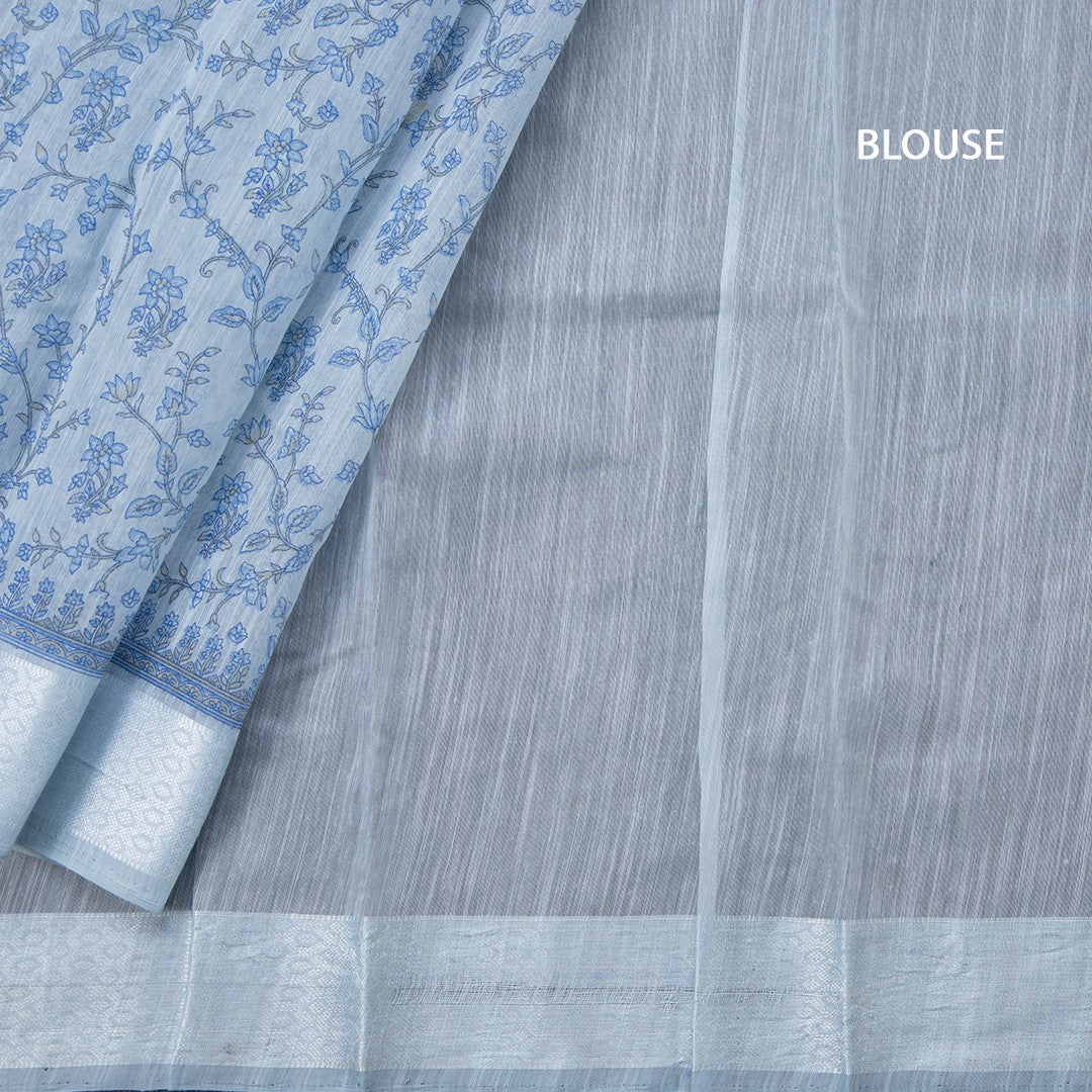 Chanderi Cotton Light Blue Printed Saree