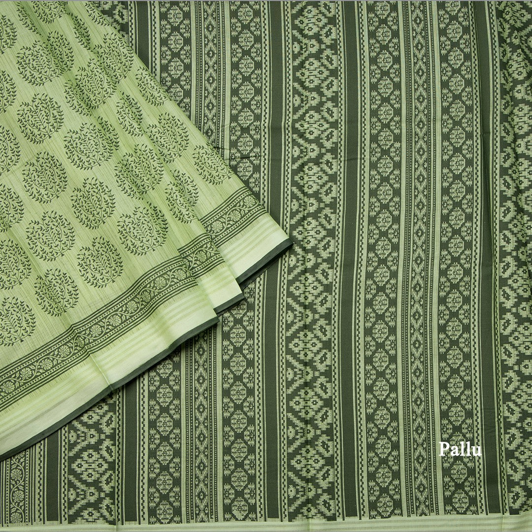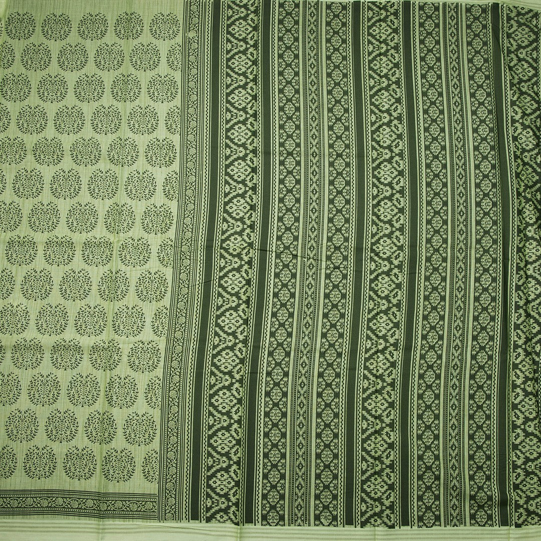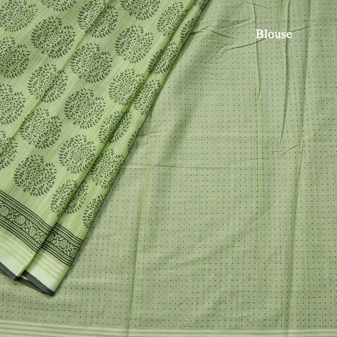 Chanderi Cotton Light Green Printed Saree 02