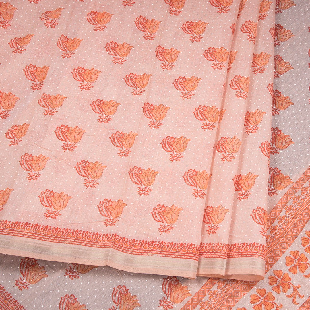 Chanderi Cotton Light Peach Printed Saree