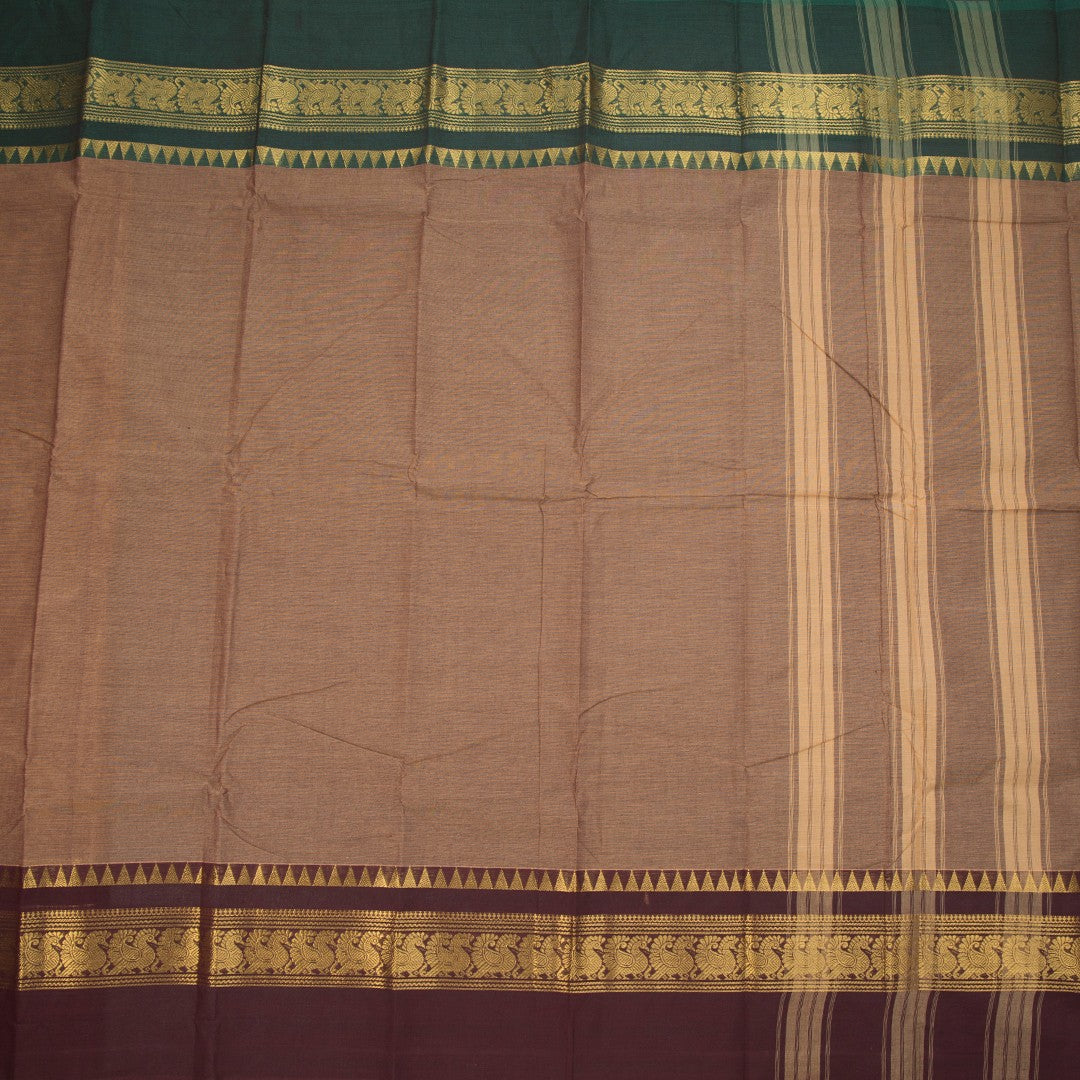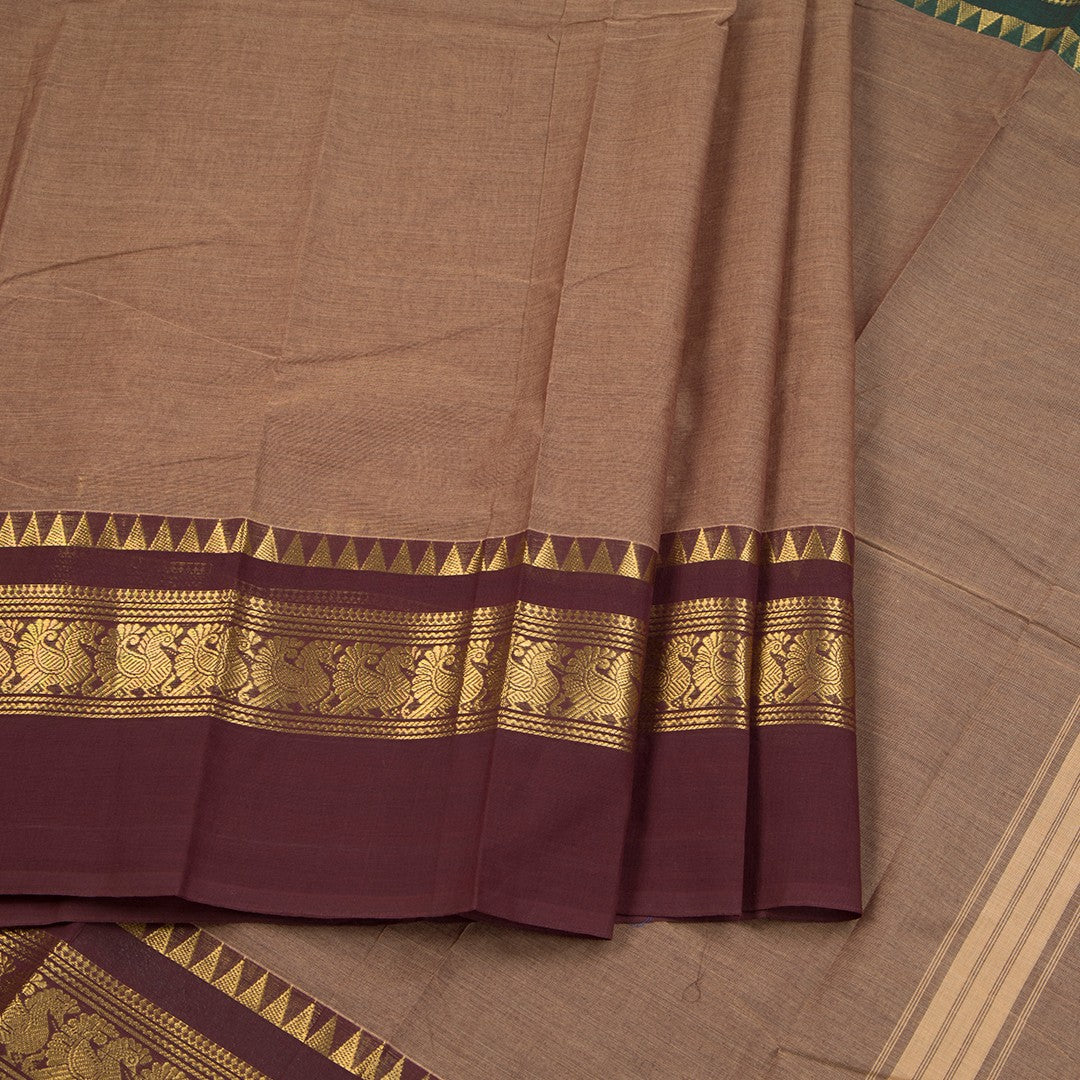 Chettinad Cotton Golden Brown Plain Saree With Temple Border Without Blouse