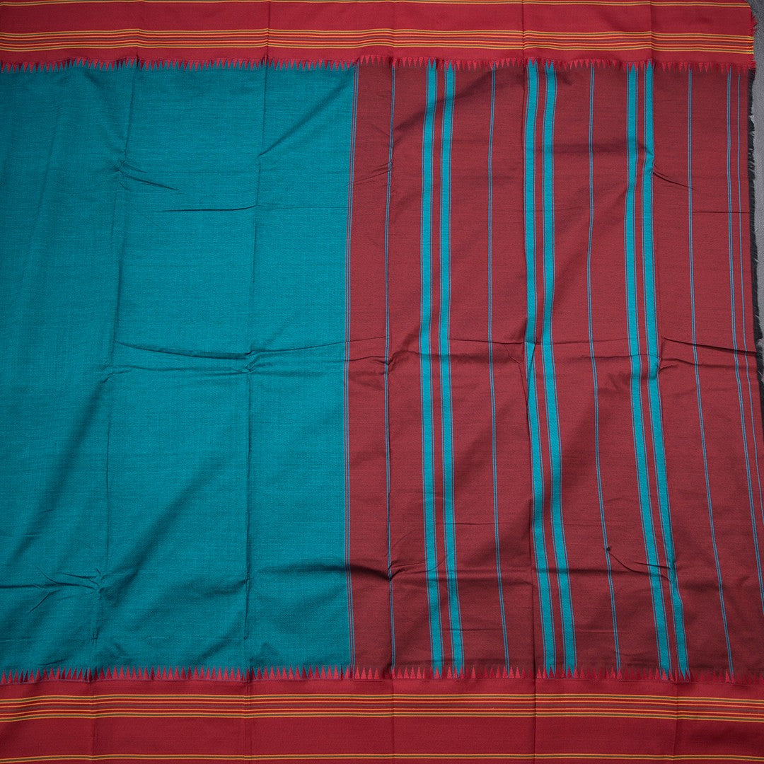 Dharwad Cotton Peacock Blue Plain Saree 02