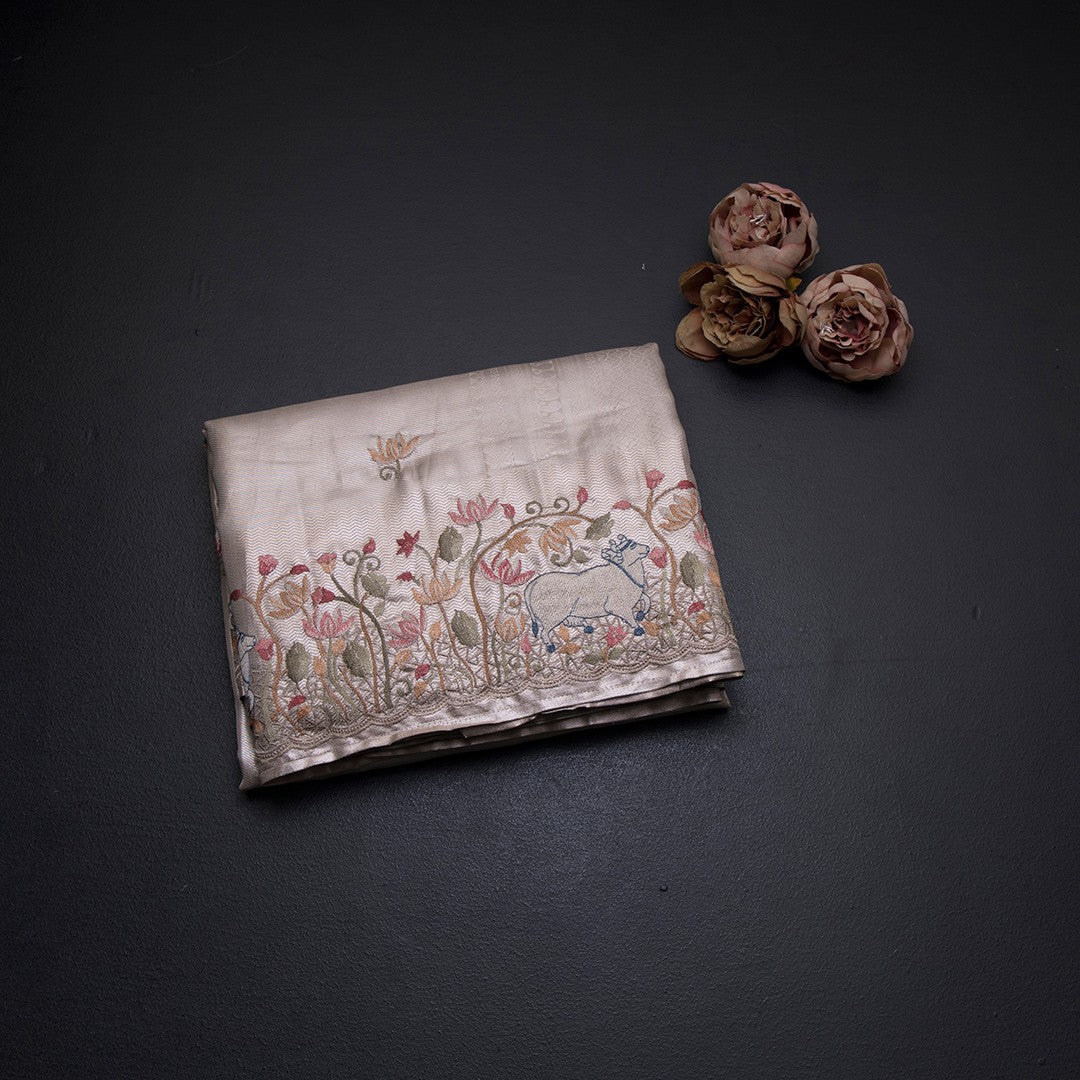 Fancy Silk Cream Traditional Thread Work Saree