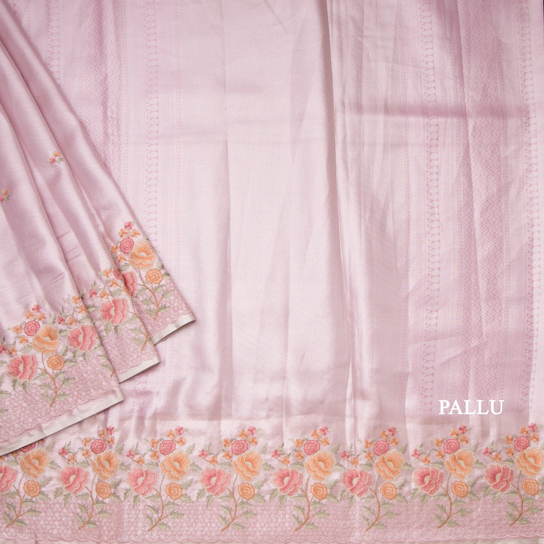 Fancy Silk Onion Pink Stylish Thread Work Saree