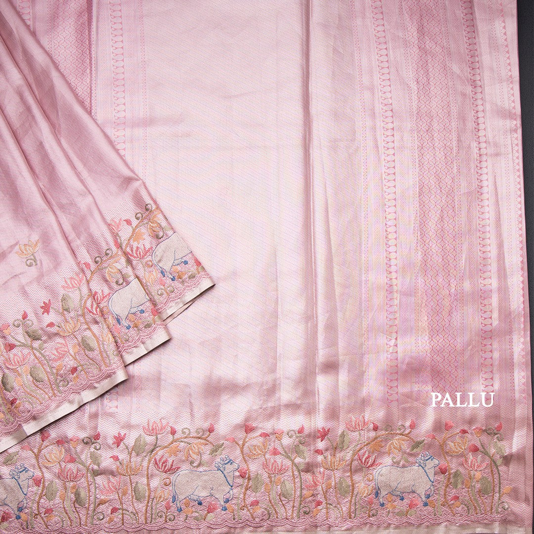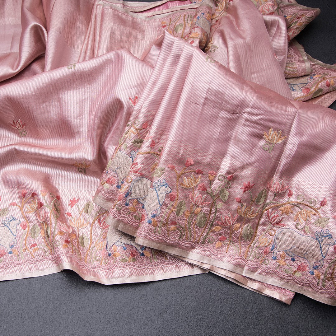 Fancy Silk Rose Pink Traditional Thread Work Saree