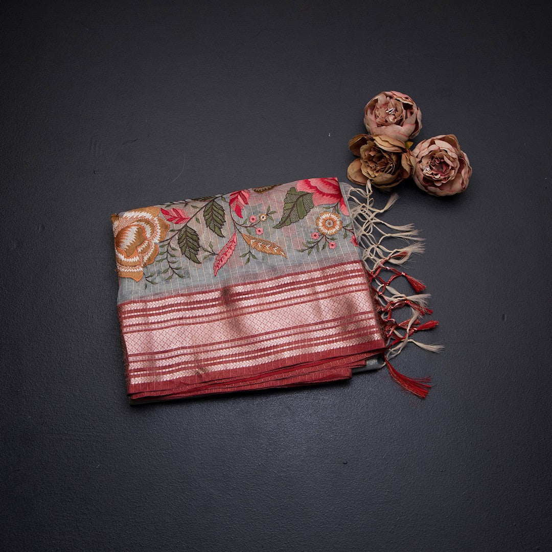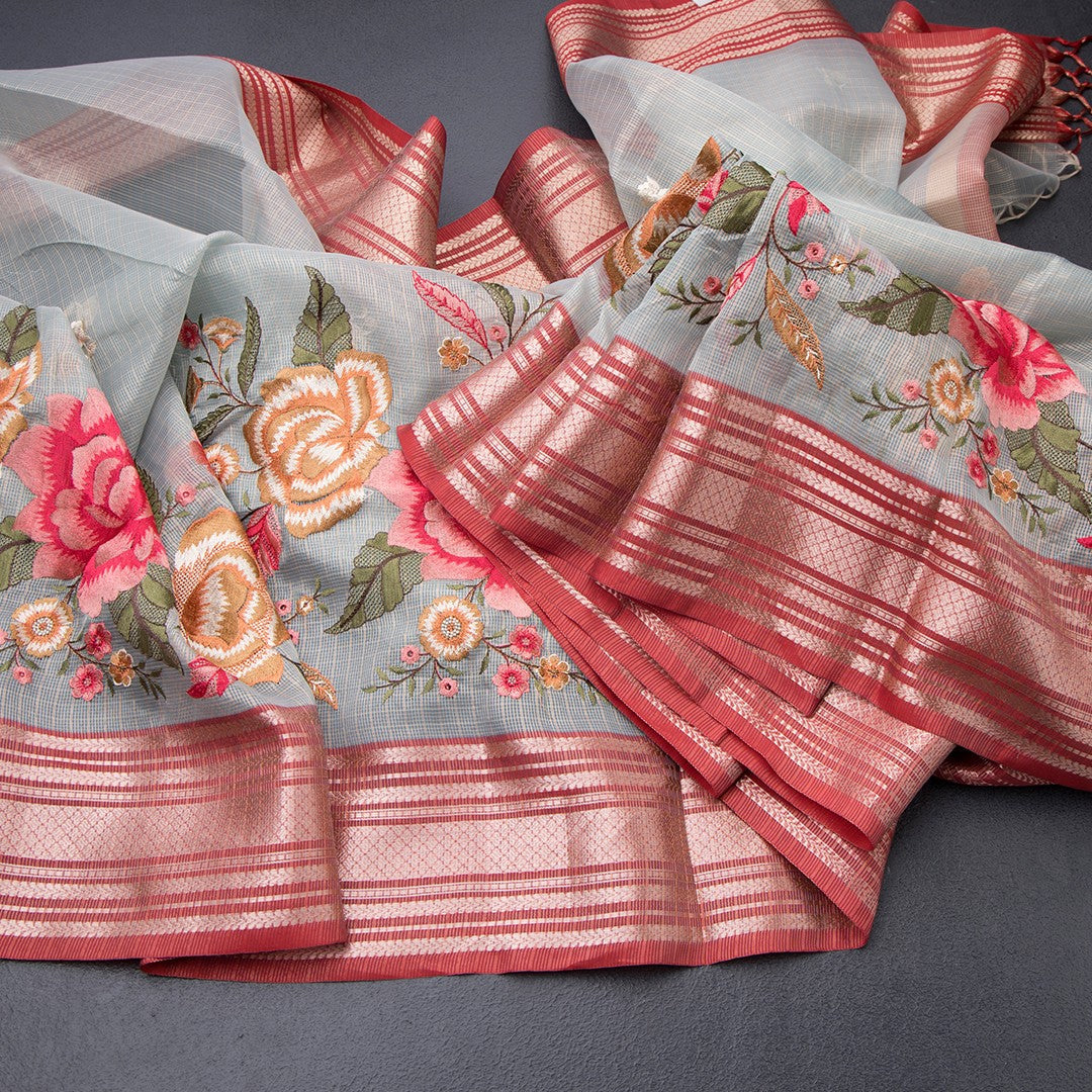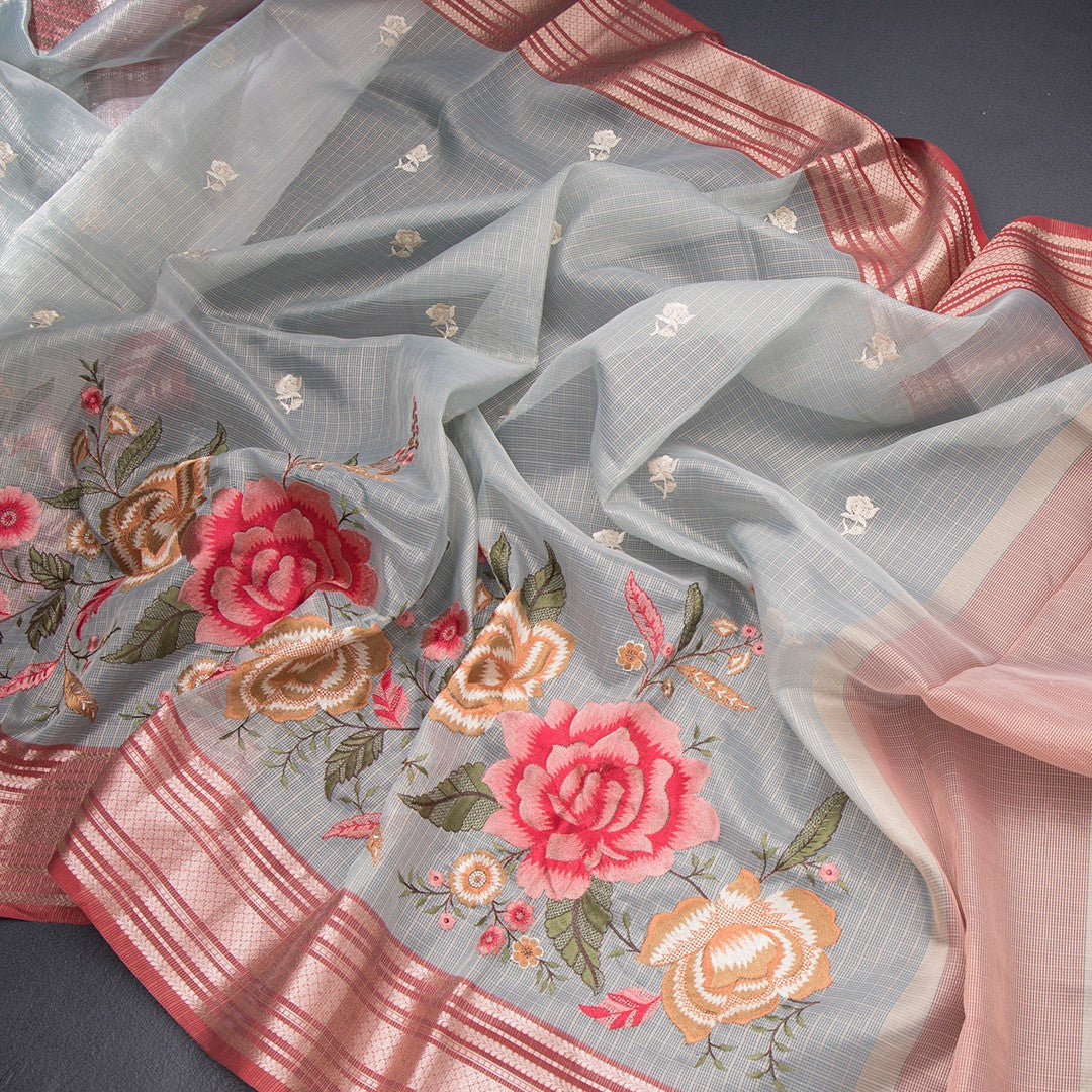 Kota Sky Blue Stylish Thread Work Saree With Zari Border