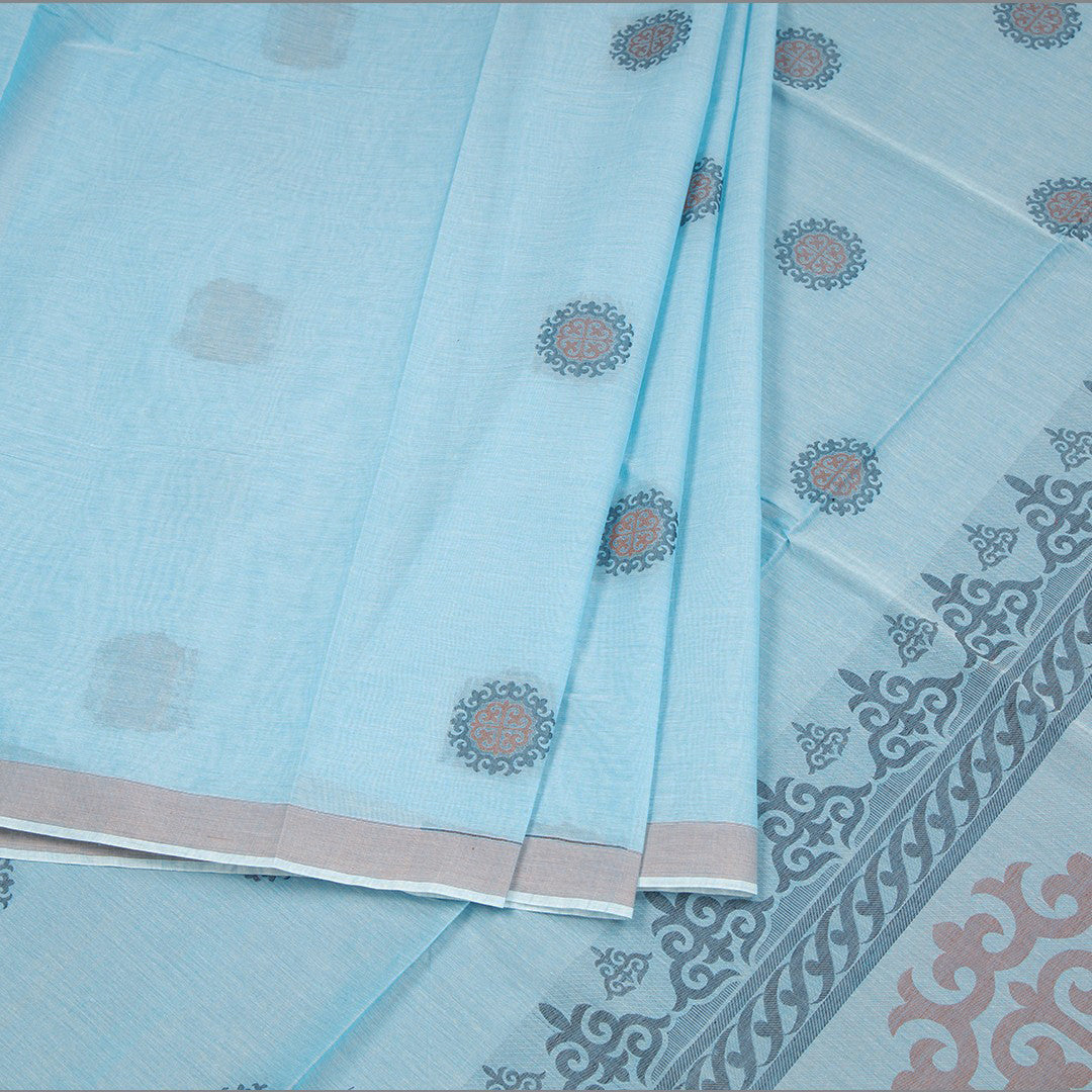Negamam Cotton Light Blue Thread Embossed Saree, Negamam's handloom cotton sarees are in high demand due toits gorgious designs, vivid colours, and light weight. Every wardrobe needs to contain these items